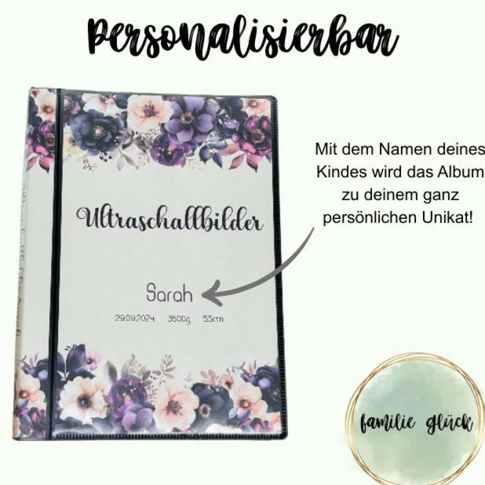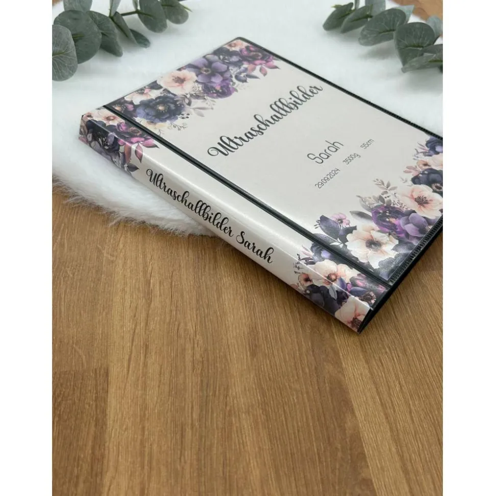 Bewahre deine wertvollsten Erinnerungen mit der Ultraschallbilder Mappe lila Blumen!