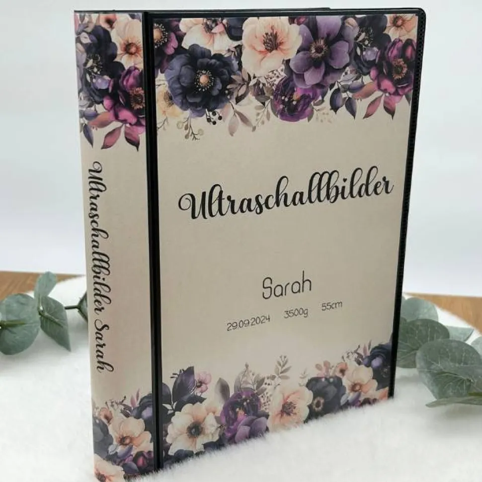 Halte die magischen Momente deiner Schwangerschaft für immer fest – mit der Ultraschallbilder Mappe im lila Blumendesign!