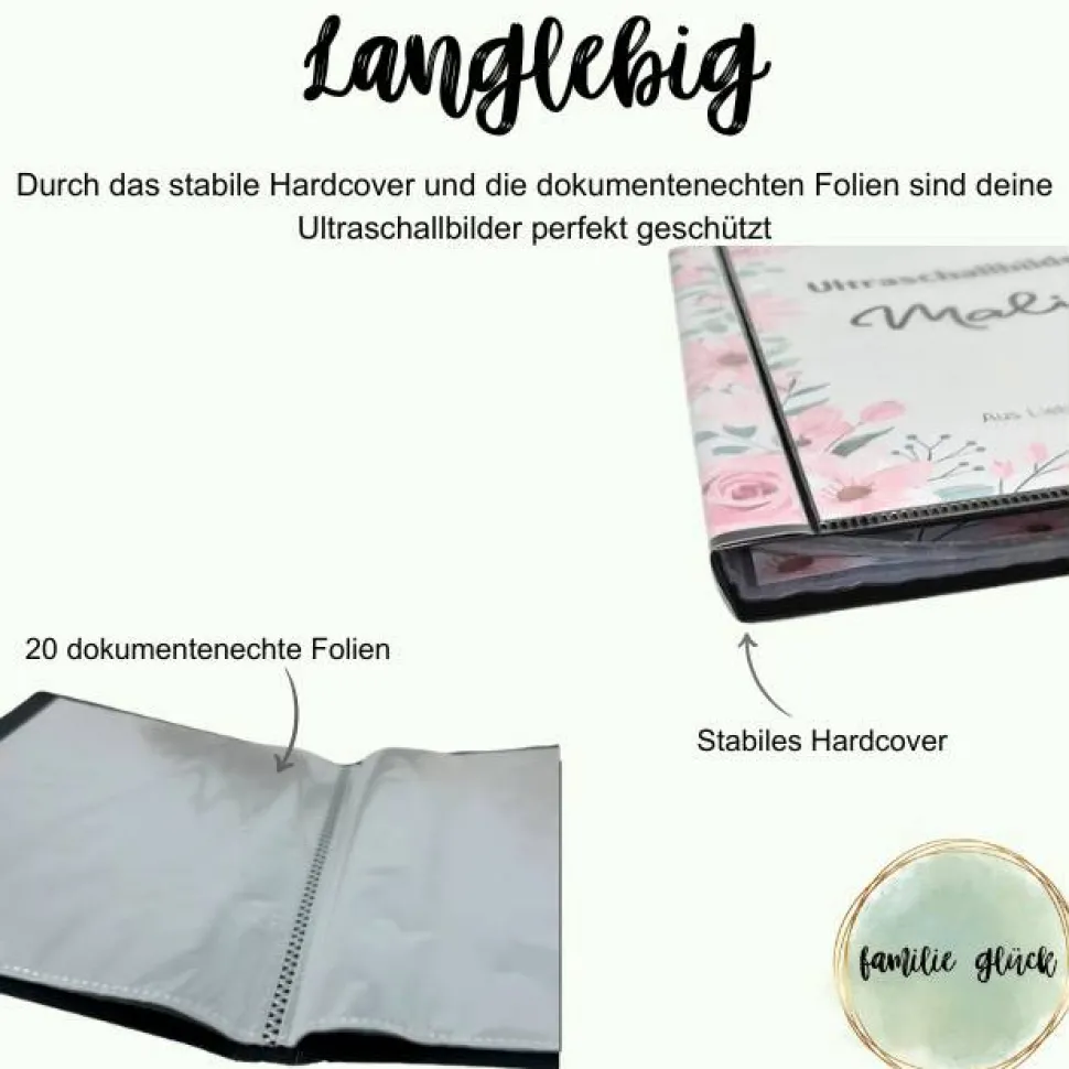 ℹ️In diesem stabilen Ultraschallalbum mit robustem Hardcover Einband sind deine Ultraschallbilder perfekt geschützt. Im Album findest du 20 dokumentenechte Folien. Auf Wunsch kannst du diese Folien entweder leer oder mit hochwertig bedruckten Vorlagen erhalten. Es ist perfekt geeignet als Geschenk zur Babyparty, als Geschenk zur Schwangerschaft oder als Erinnerung an die Schwangerschaft.