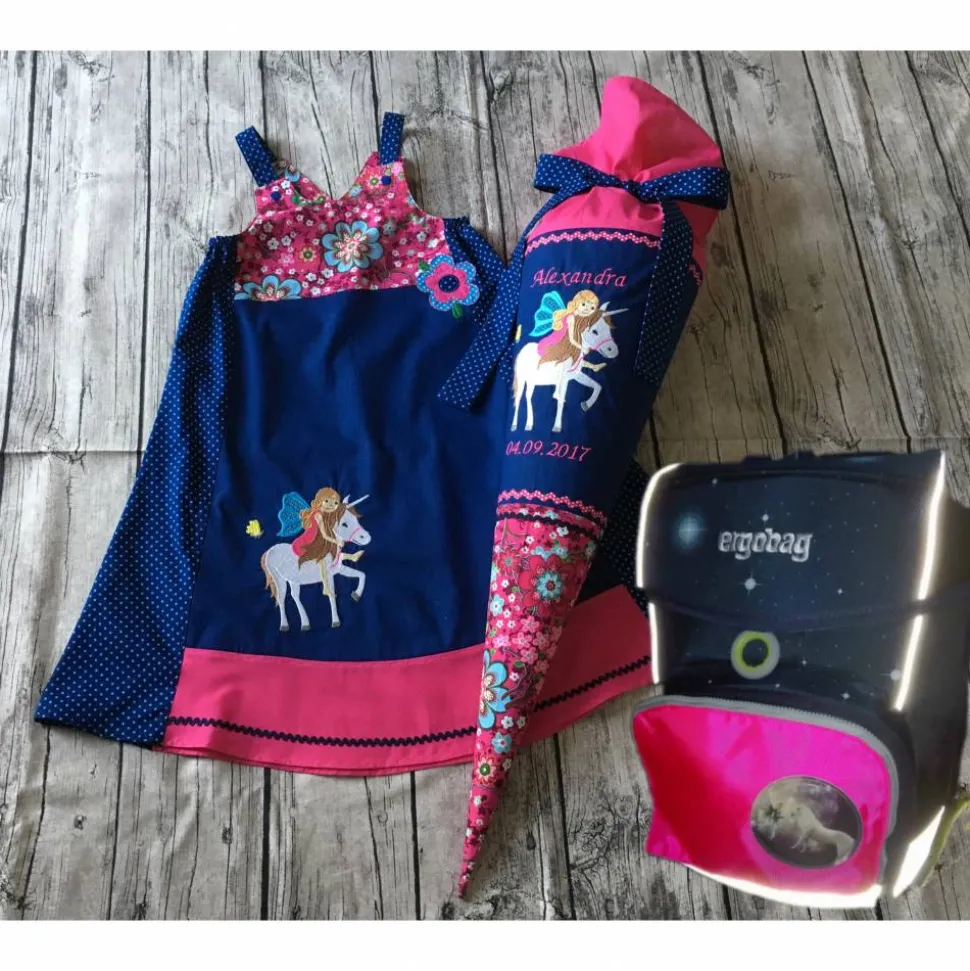 Hier habe ich ein ganz besonderes Angebot für euch, ich erstelle euch eine Schultüte und das passende Kleid nach dem Schnitt Vida von Farbenmix ganz nach euren Wunschvorgaben. Ihr dürft, Wunschfarben und Thema an mich weiter geben und ich zaubere euch ein ganz persönliches Unikat. Gerne stimme ich die beiden Sachen auch farblich auf euren Ranzen ab!