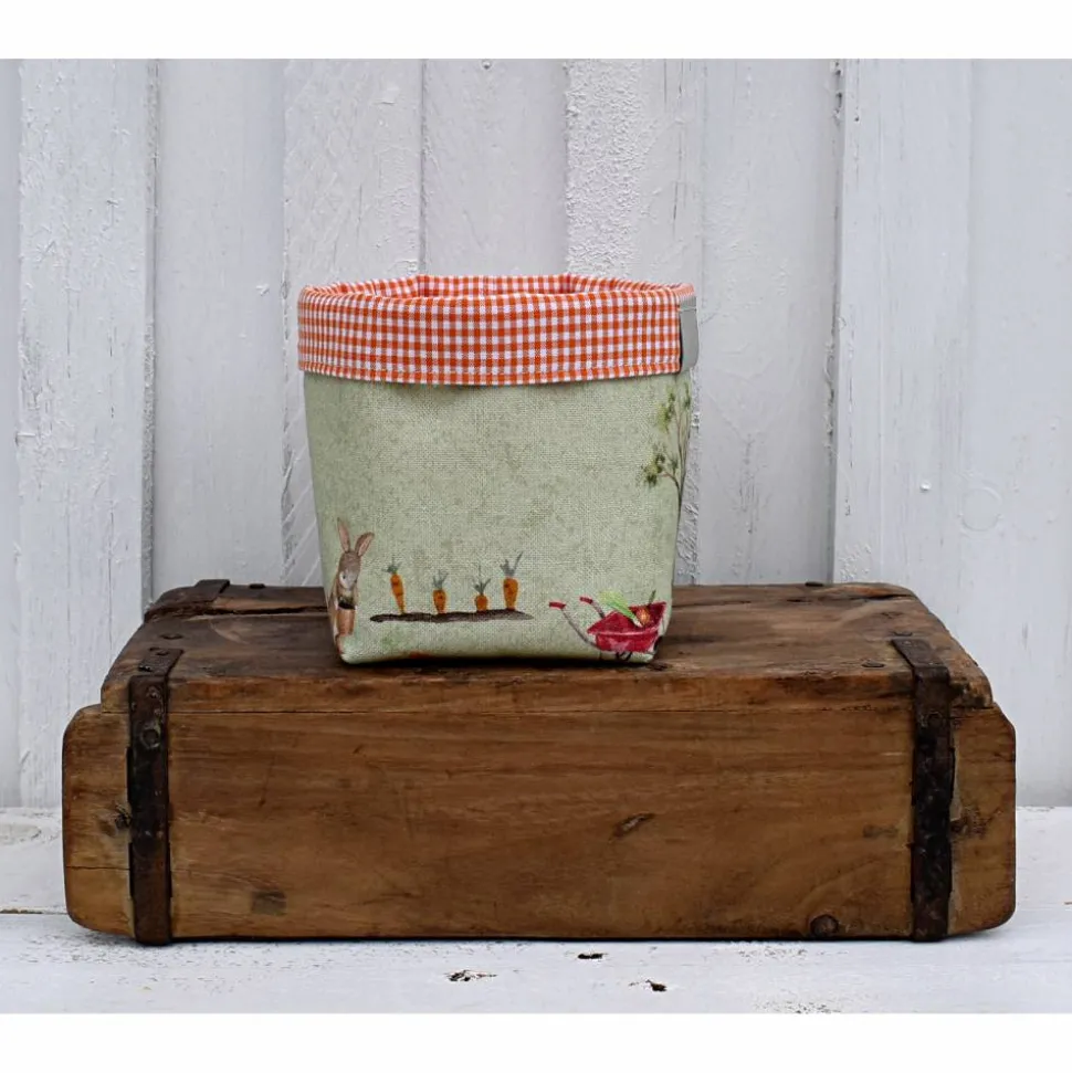 z.B. mit Stroh oder Heu befüllt, für die Ostereier, als Geschenkbeutel, als Überzug für eine Vase / Blumentopf, als Brötchenkorb, Aufbewahrung im Kinderzimmer …