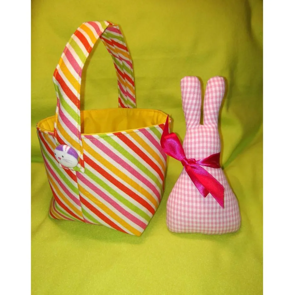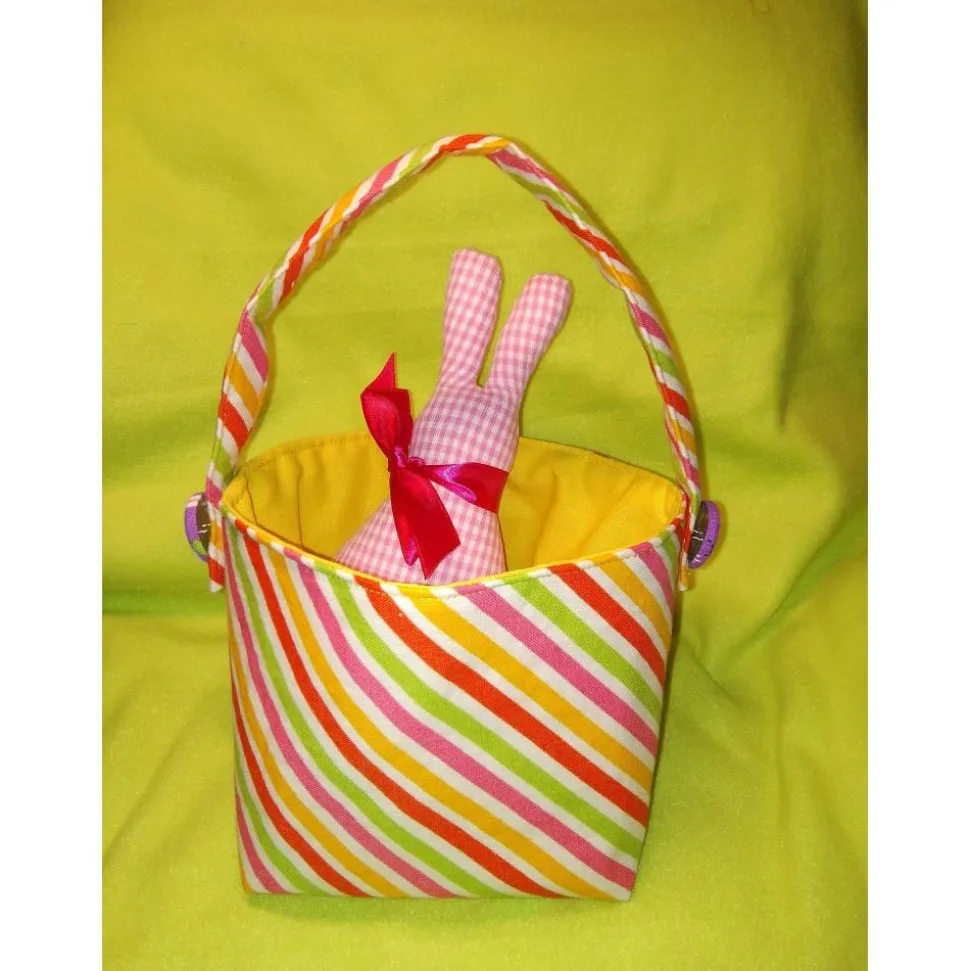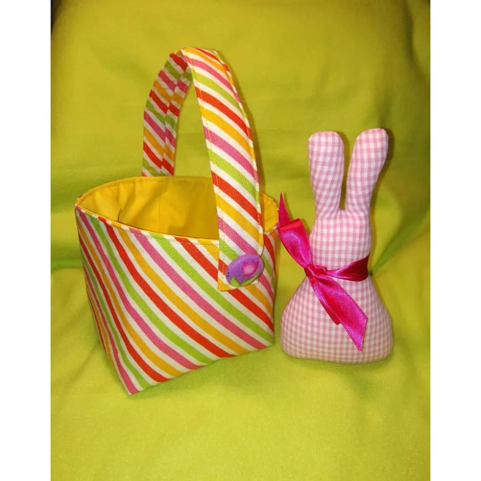 Jetzt kann der Osterhase kommen: Oster-Körbchen aus gemusterten Baumwollstoffen mit Henkel.