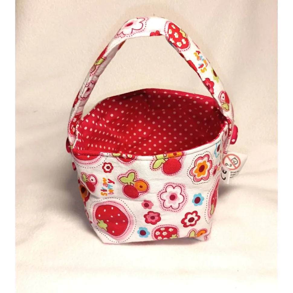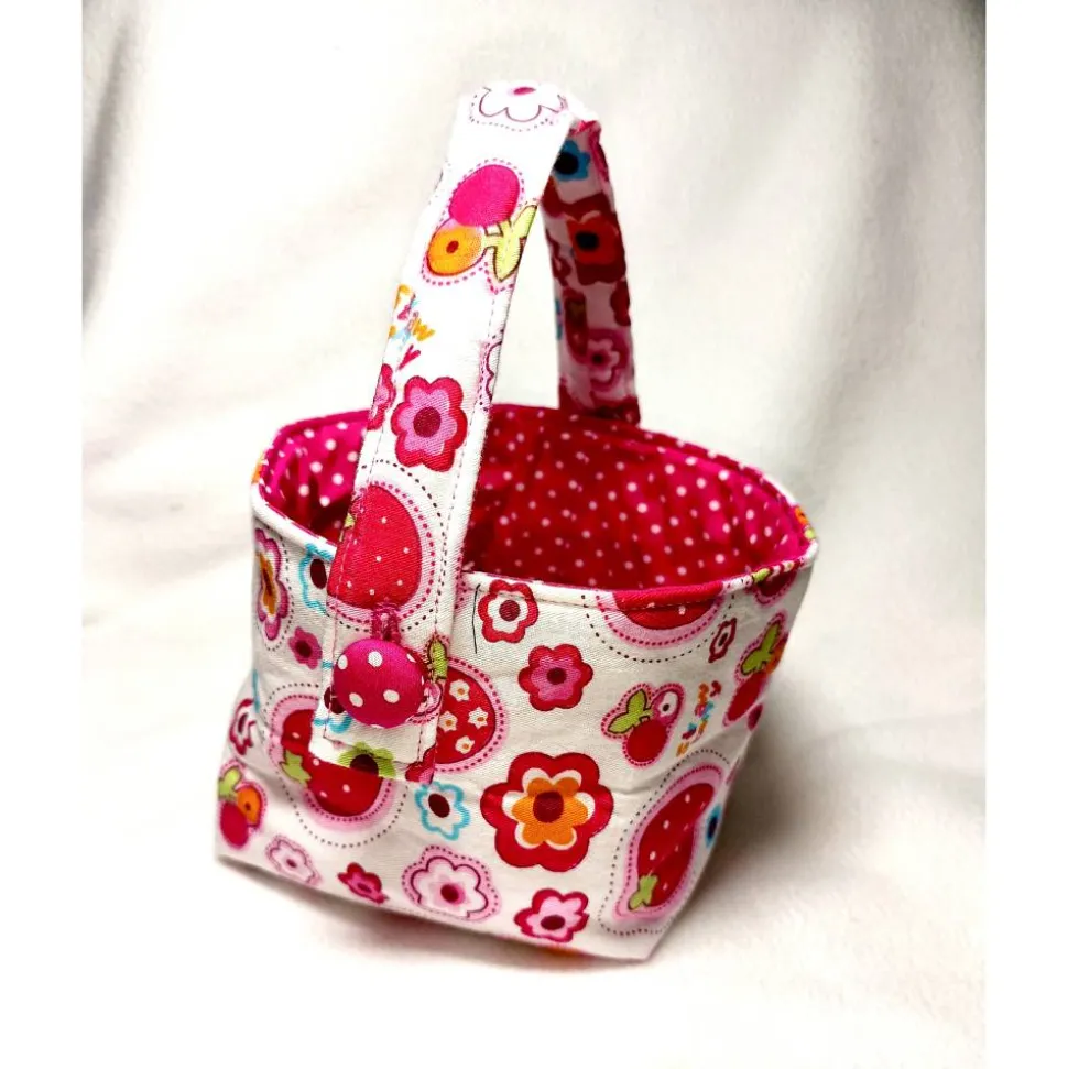 Jetzt kann der Osterhase kommen: Oster-Körbchen aus gemusterten Baumwollstoffen mit Henkel.