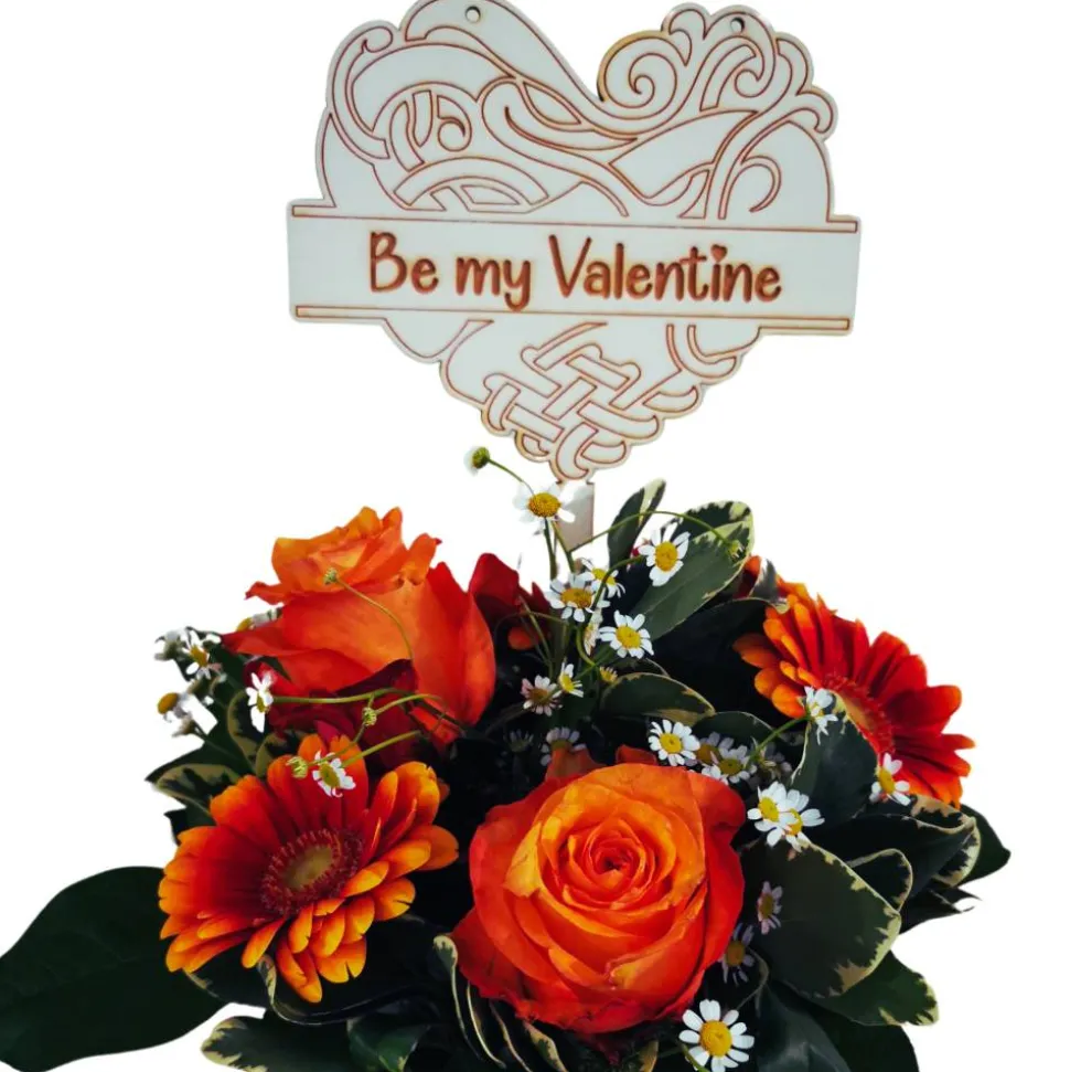 2) Blumen-Topper mit Schriftzug „Alles Liebe zum Valentinstag“