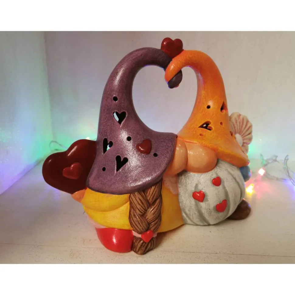 Die Wichtel sind ca 19cm hoch und 24cm breit. Sind aus Keramik, handgemalt mit viel Liebe zum Detail. Verwendet hab ich dafür Acrylfarben und abschließend wetterfest versiegelt, können also auch draußen stehen, sollten aber vor Frost geschützt werden. Die Figuren sind ausgeschnitten und können beleuchtet werden, ich empfehle LED Kerze oder Lichterkette zu verwenden.