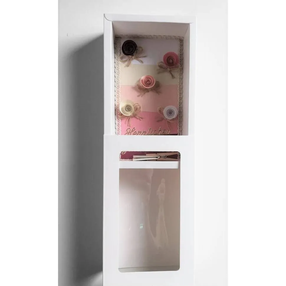 Maße der Verpackung: 20,8 x 12,5 x 5 cm. Die stabile, weiße Kartonverpackung ist mit einem praktischen Schiebedeckel und Sichtfenster ausgestattet.