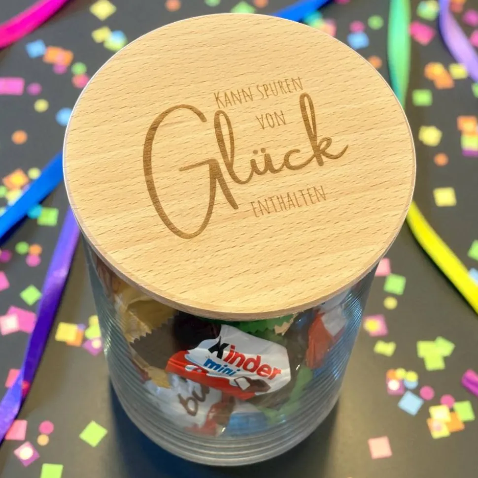 Dann ist das schlichte und mit Liebe gravierte Vorratsglas genau das richtige.