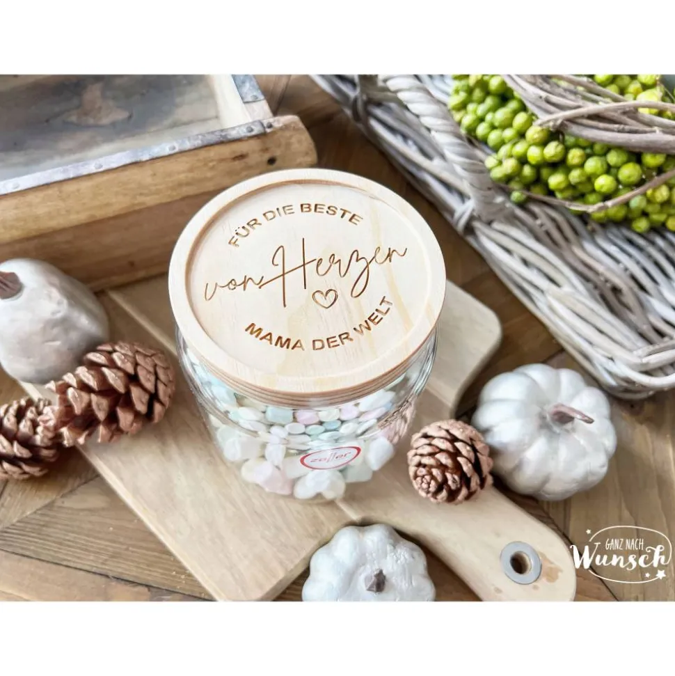 Das Vorratsglas besteht aus hochwertigen Borosilikatglas, der Deckel ist aus Kiefernholz und schließt dank seiner Silikonlippe luftdicht ab.