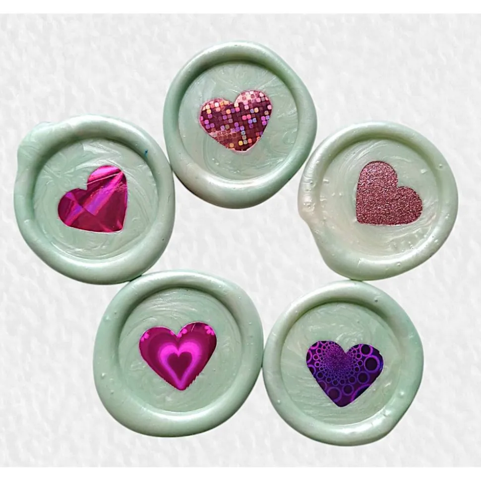 Verleihe deinen Briefen, Einladungen und Geschenken das gewisse Etwas! Mit diesen 50 handgemachten Wachssiegeln mit bunten Herzen erhältst du einzigartige Siegelaufkleber in 25 verschiedenen Farben. Jedes Siegel ist ein Unikat und bringt durch die eingegossenen Glitzerherzen einen besonderen Glanz auf deine Post.