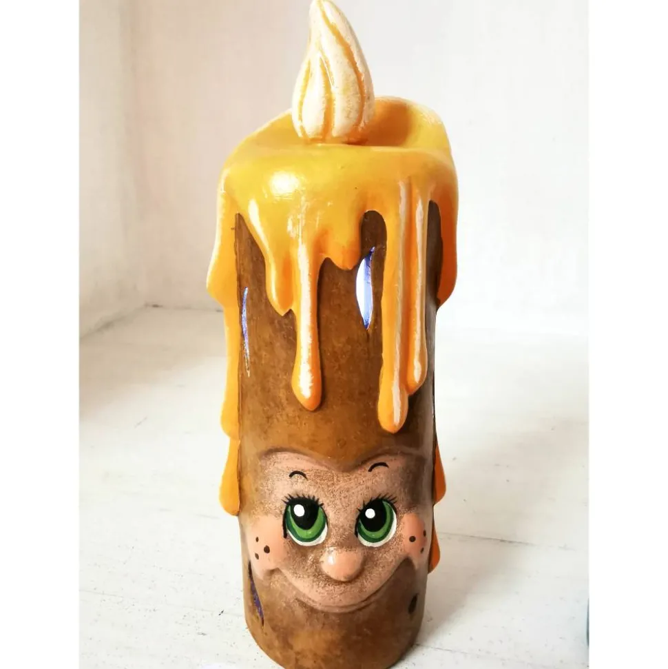 Die Kerze ist ein Highlight als Herbst und Halloweendeko. Sie ist aus Keramik, gebrannt bei ca 1060 Grad. Die Figur ist ausgeschnitten und kann beleuchtet werden, Lichterkette liegt bei. Bemalt wurde mit viel Liebe zum Detail, verwendet hab ich dafür Acrylfarben und abschließend zweimal wetterfest versiegelt. Sie kann draussen stehen, sollte aber vor Frost geschützt werden. Diese Kerze ist ca 17cm hoch.