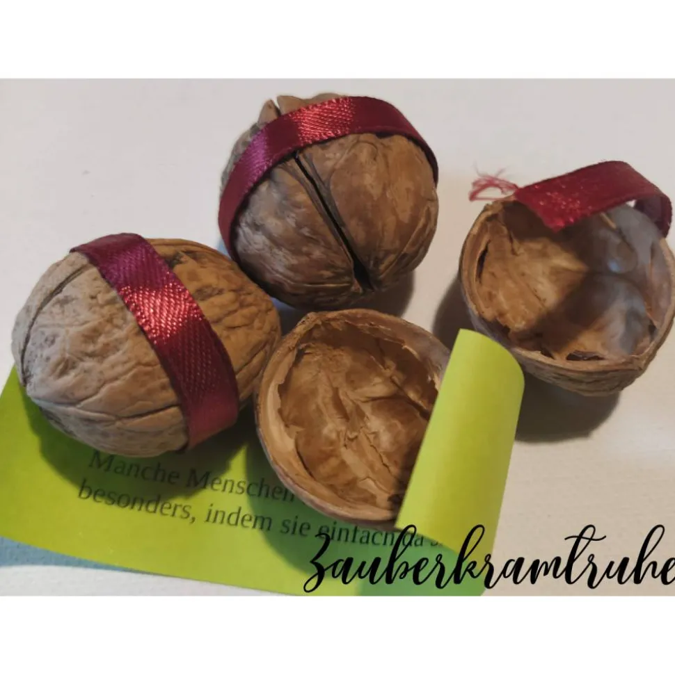 24 gefüllte Walnüsse für einen glücklichen Advent. Die Walnüsse sind mit Segenswünschen, Zitaten oder Sprüchen gefüllt in einem kleinen Jutesack, der ein Teil eurer Adventsdekoration werden möchte.