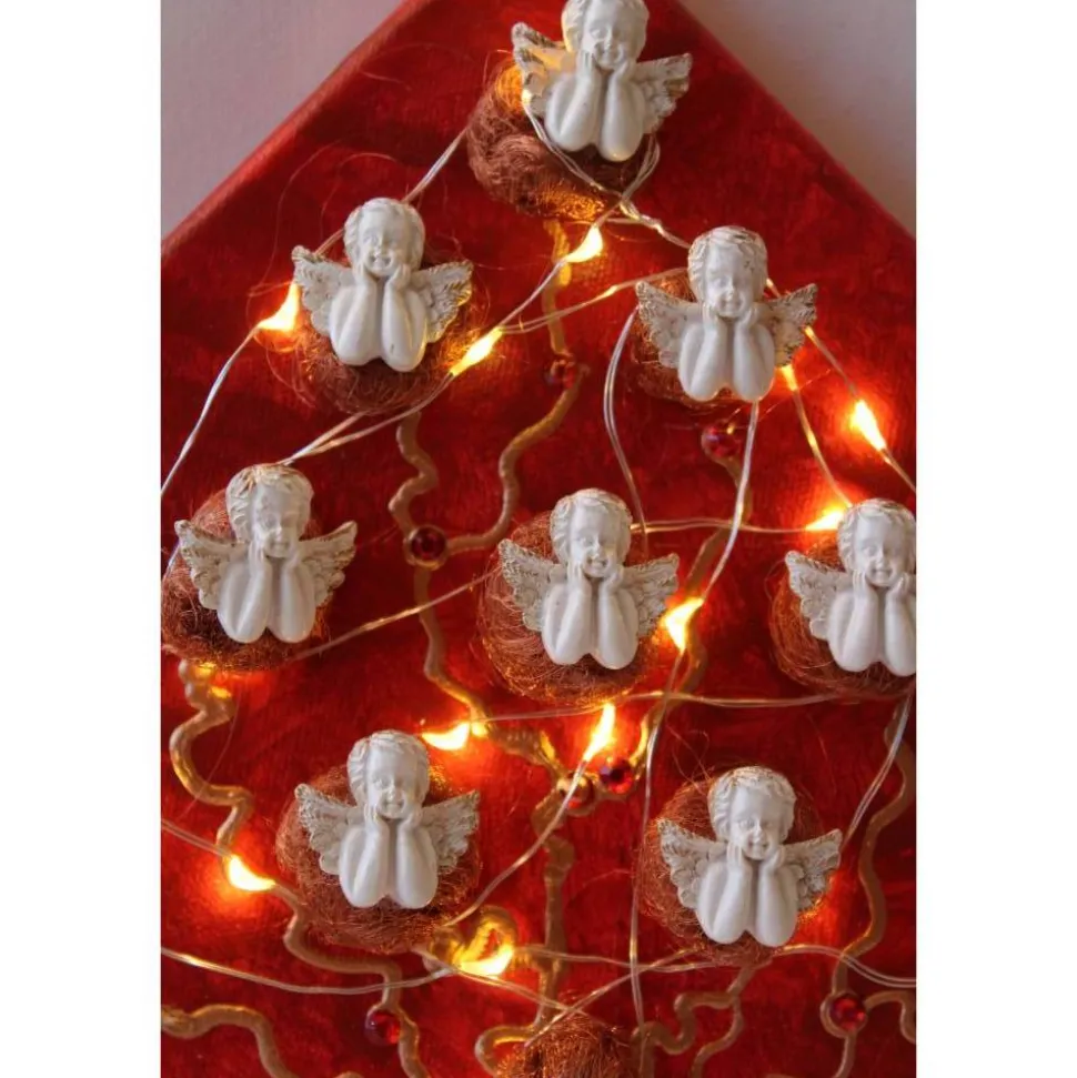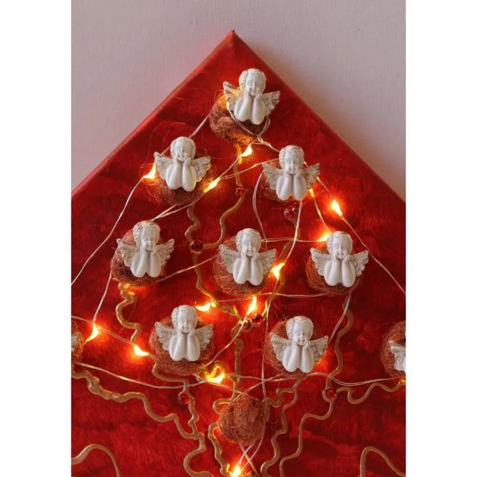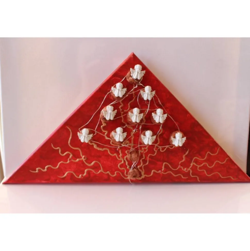 Bei diesem Modell handelt es sich um ein mit Engeln gestaltetes Objekt. Die Verzierung besteht aus Glitzersteinen und Engelshaar. Die Leinwand ist mit Acrylfarben gestaltet.