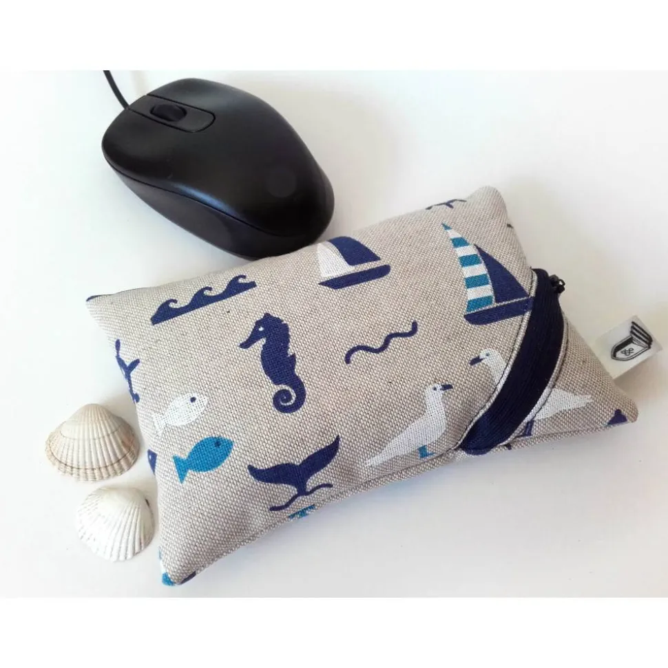Das Besondere: Um das Handgelenk optimal zu entlasten, kann die Kissenhöhe des Mauskissens individuell angepasst werden, indem durch den Reißverschluss Dinkelspelz entnommen wird. So lässt sich der Kissenbezug ohne Füllung auch problemlos waschen und somit auch bei intensiver Benutzung hygienisch sauber halten. Der Dinkelspelz lässt sich danach ganz einfach mit einem breiten Trichter, z. B. einem Marmeladentrichter oder einem aus Papier gerollten Trichter, wieder einfüllen.