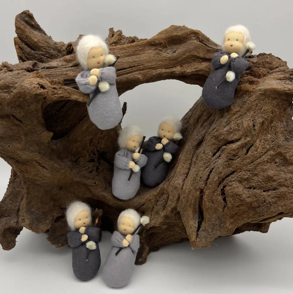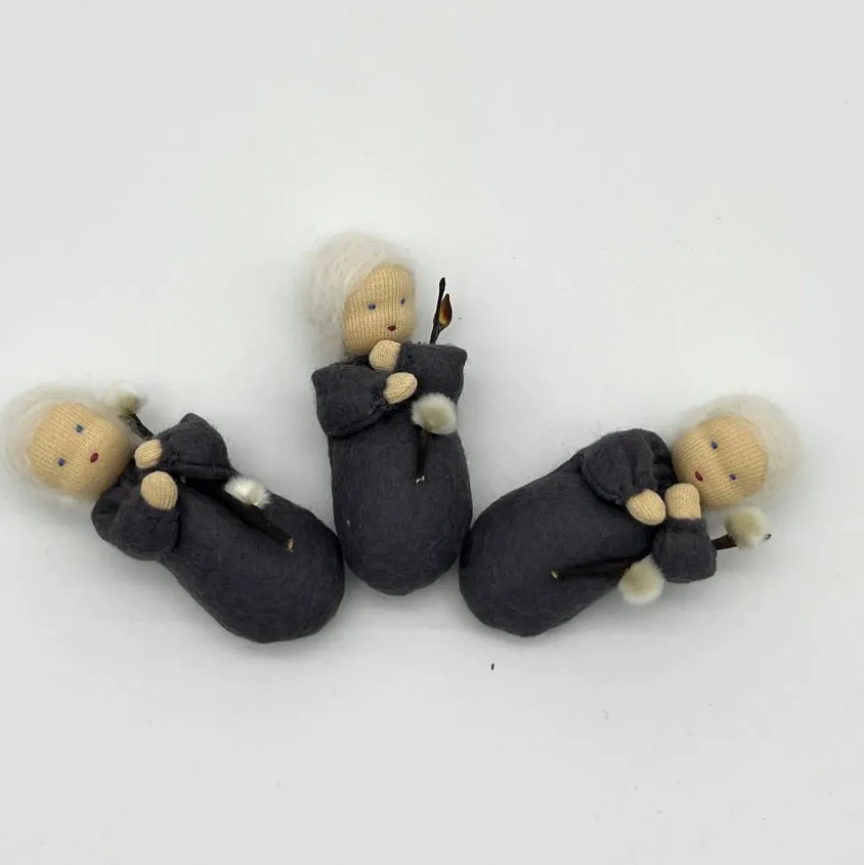 Das Püppchen ist unten geschlossen und mit reiner Schurwolle gefüllt.