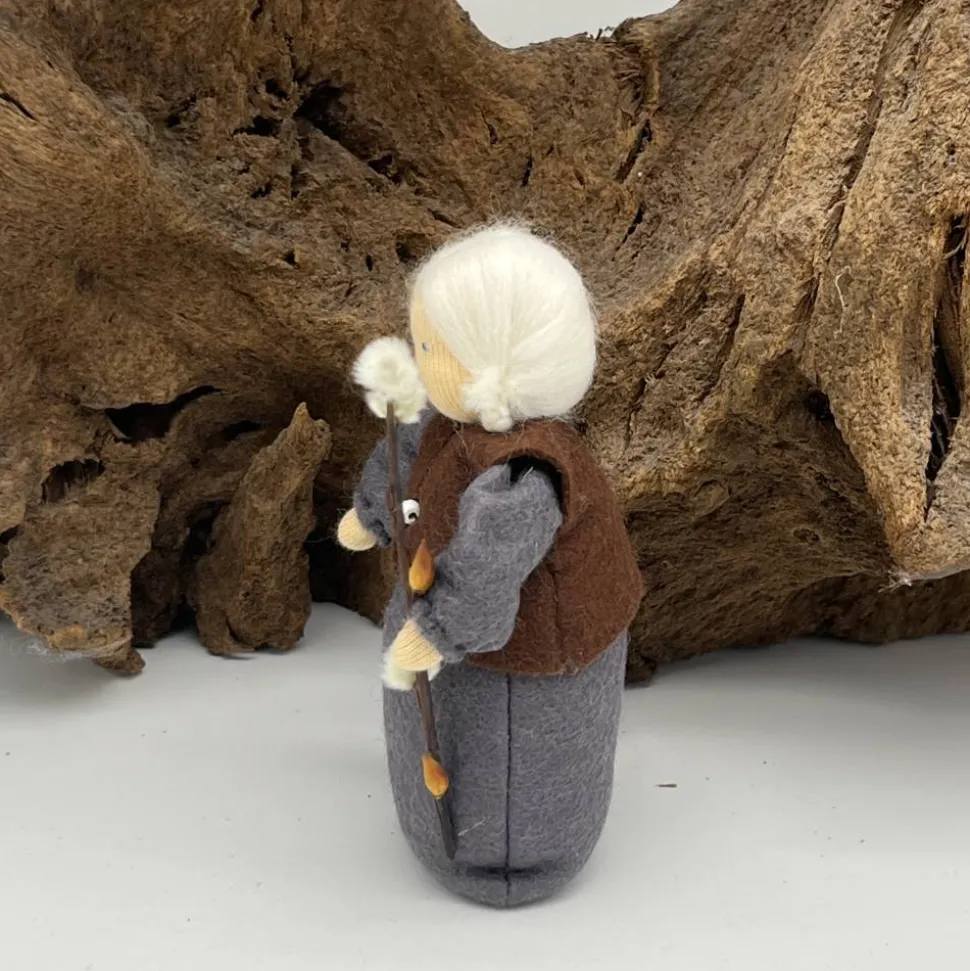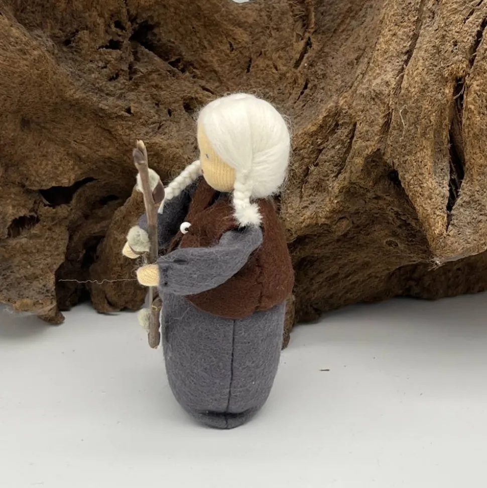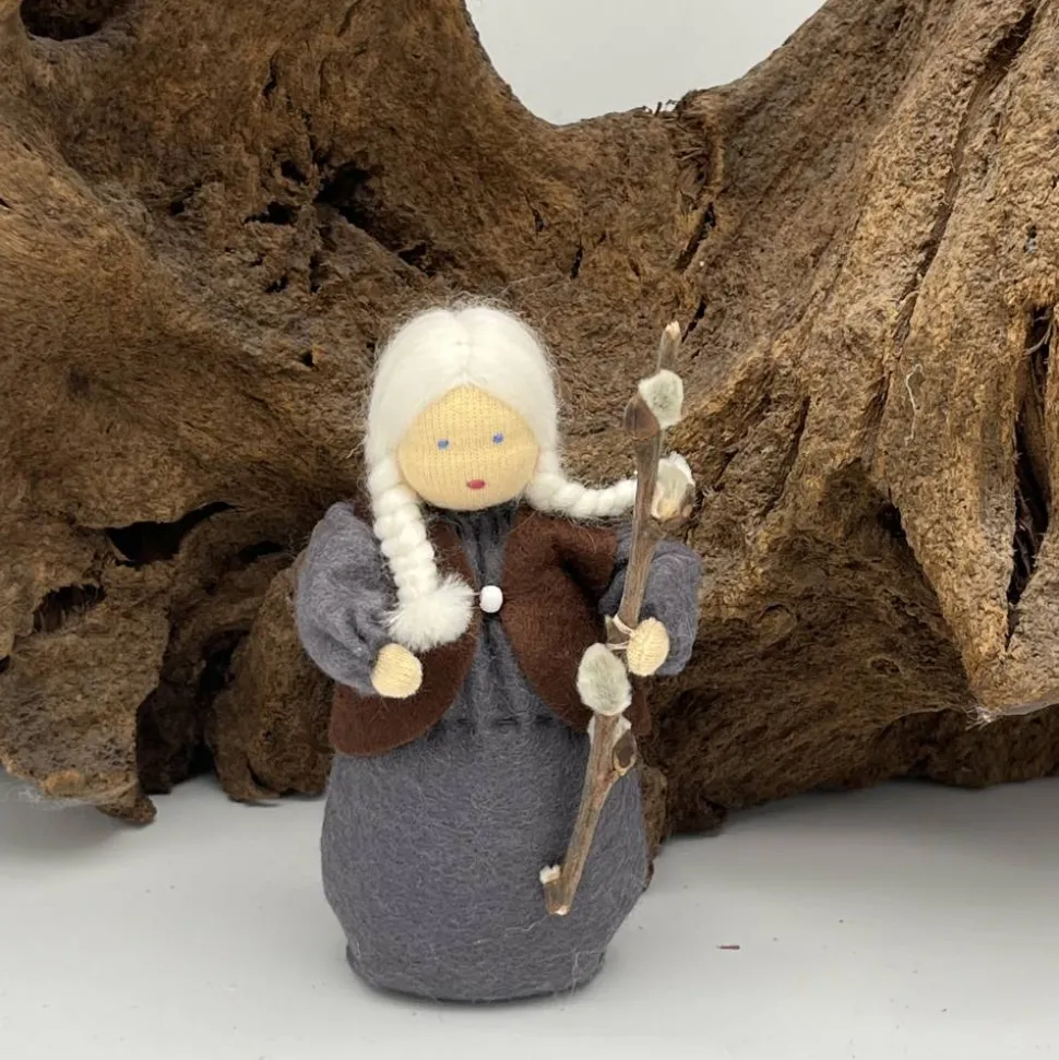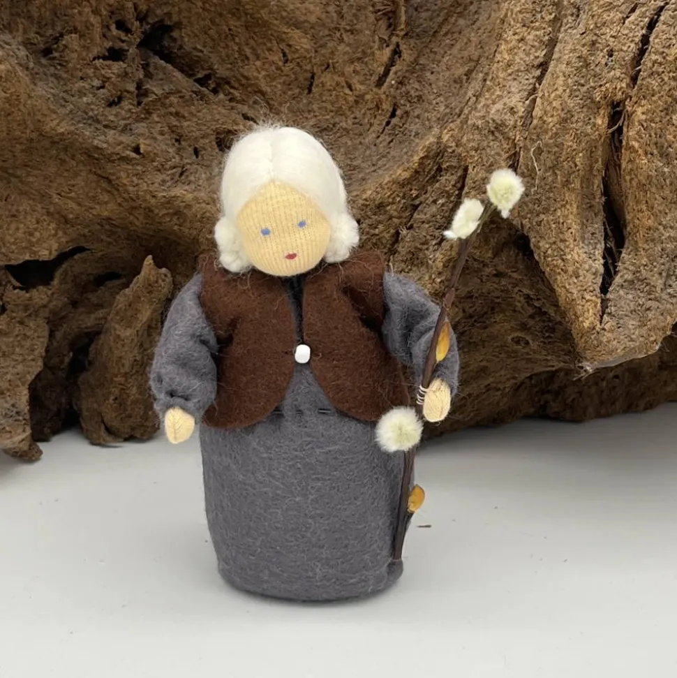 Das Püppchen ist unten geschlossen und für einen guten Stand unten mit feinem Dekokies und der Rest mit reiner Schurwolle gefüllt.