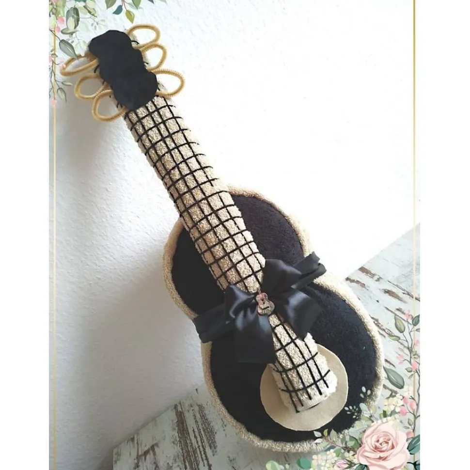 Diese handgefertigte Gitarre besteht aus hochwertigen Frottee Handtüchern und Frottee Gästetüchern. Sie wurde mit viel Liebe zum Detail gestaltet und eignet sich ideal als Geldgeschenk zum Geburtstag oder zu Weihnachten – besonders für Musikanten und Musikbegeisterte.