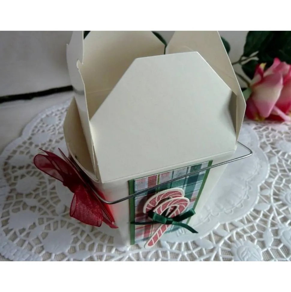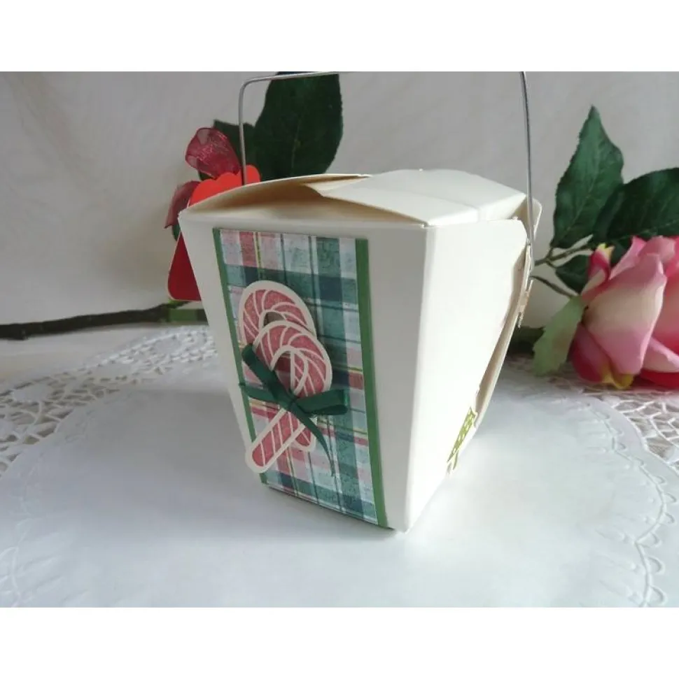 Takeoutbox, Tonkartion, Designerpapier, Stempelfarbe, Glitzerpapier, Organzaschleife