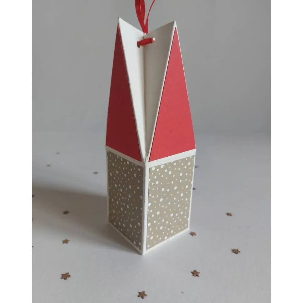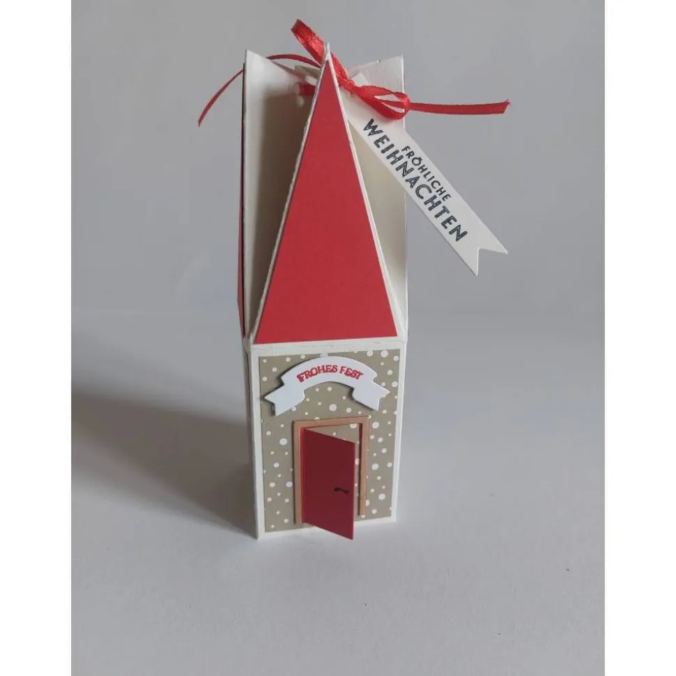 Entdecke die perfekte Geschenkverpackung für Weihnachten: Diese weihnachtliche Box ist eine handgemachte Turmverpackung, ideal für Geldgeschenke und kleine Überraschungen. Das Besondere an dieser Verpackung ist das aufwendig in Sternenform gefaltete Dach, das sofort weihnachtliche Stimmung verbreitet.