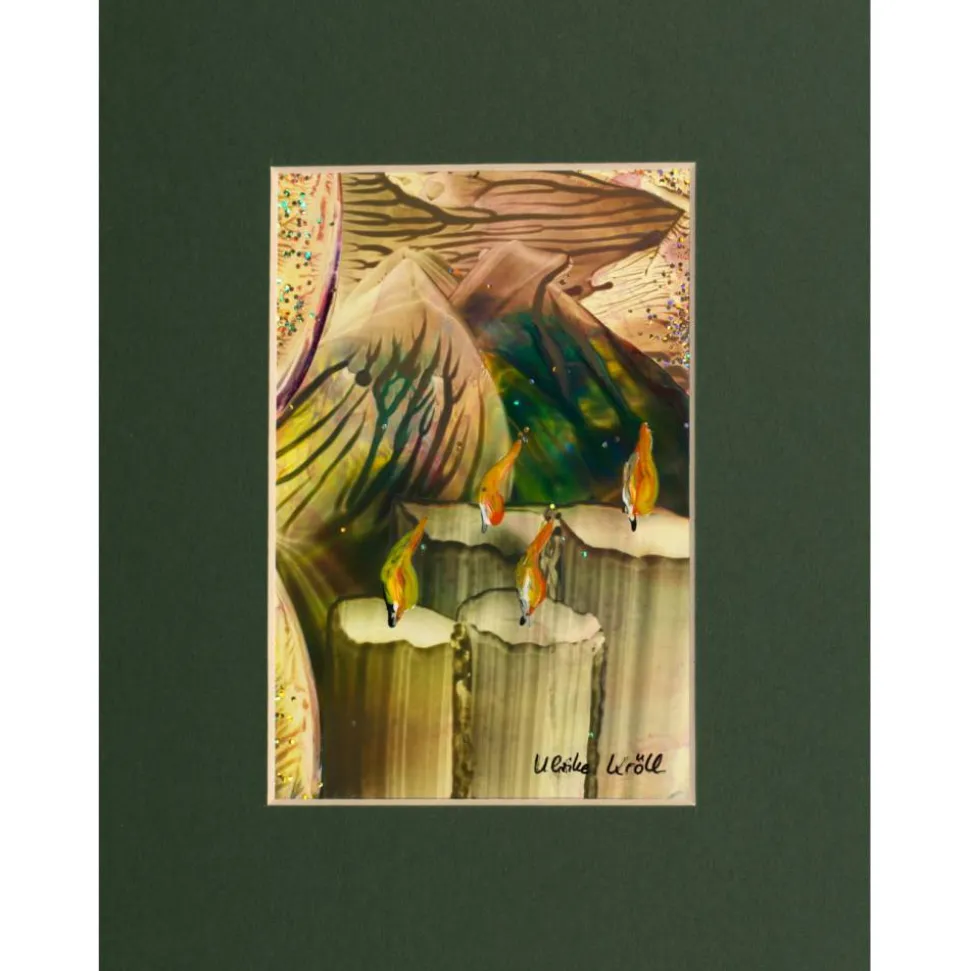 Es muss zügig mit dem Maleisen gearbeitet werden, denn das heiße Wachs erkaltet sehr schnell auf dem Malgrund. Dabei entstehen gegenständliche aber auch intuitive Kunstwerke, die phantasie- und fast geheimnisvoll sein können.