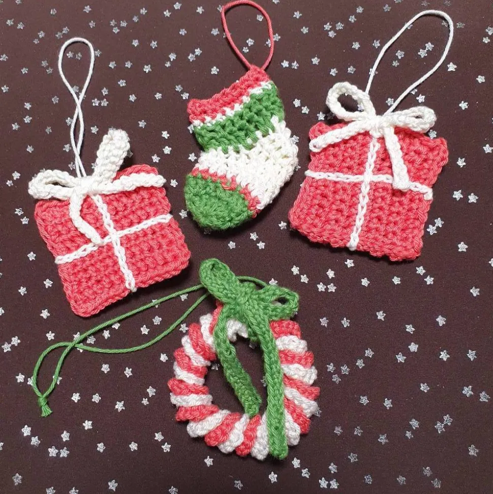 Die Aufhänger bestehen aus dem verwendeten Häkelgarn.