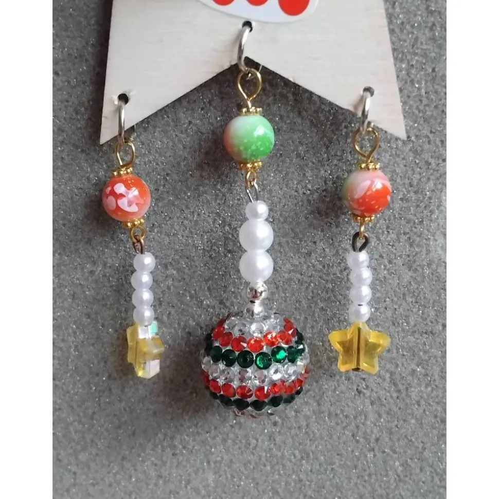 Der Holzstern ist ca 8cm groß und präsentiert im Vordergrund einen detailreichen Holzengel. Vom Stern hängen 3 Anhänger, die mit Perlen, Sternchen und einer funkelnden Strasskugel verziert sind.