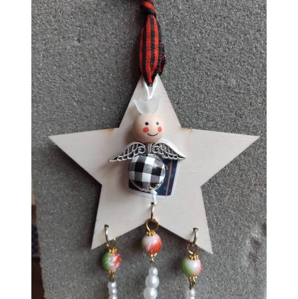 Entdecke den zauberhaften, weihnachtlichen Sternenanhänger aus Holz mit Perlenengel – handgefertigt, liebevoll gestaltet und vielseitig einsetzbar als festliche Deko für deinen Baum, das Fenster oder die Wand.
