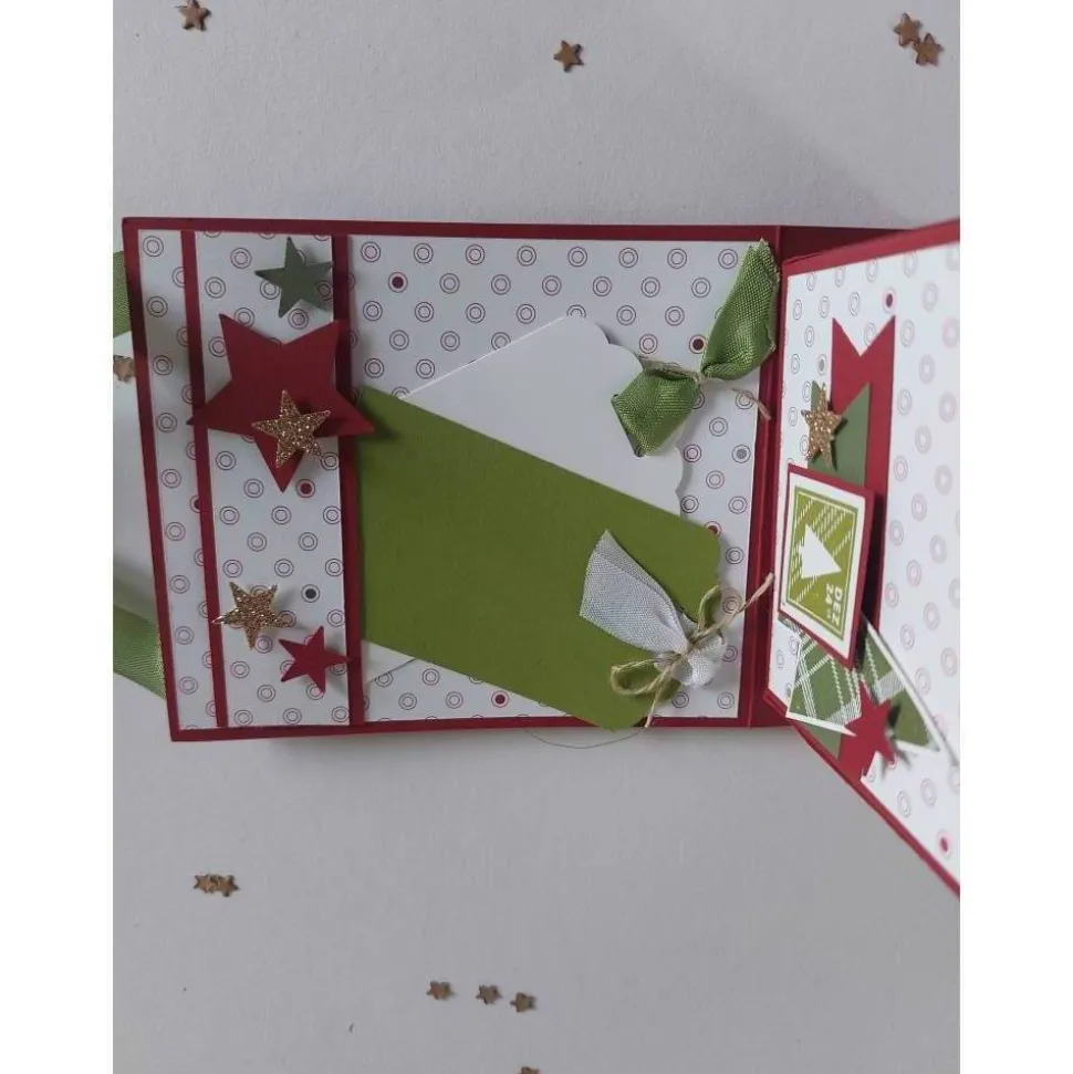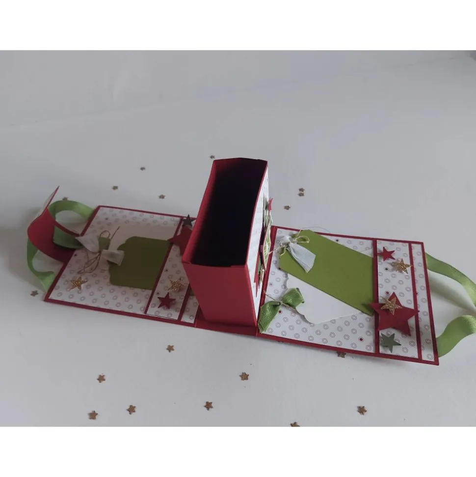 Verschenke Freude zu Weihnachten mit diesem liebevoll gestalteten, weihnachtlichen Täschchen, ideal für Geldgeschenke oder kleine Überraschungen. Das handgefertigte Täschchen besticht durch hochwertige Materialien wie Tonkarton, Designpapier, Glitzerpapier und Goldfaden. Mit hübschen Sternen und goldglänzenden Details zieht es alle Blicke auf sich.