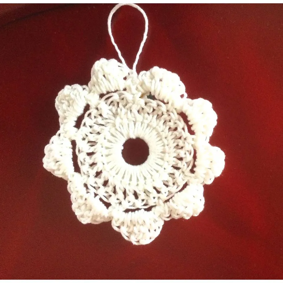 Das schöne handgehäkelte Weihnachts-Häkellkränzchen kann als Baumschmuck, oder auch als festliche Wand-, Tür- und Fenster-Dekoration in der Adventszeit aufgehängt werden.