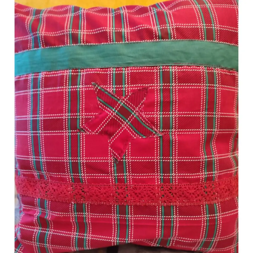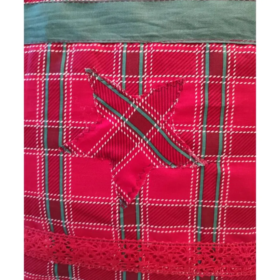 genäht und mit grüner und roter Zierbörse, sowie Sternapplikation verschönert