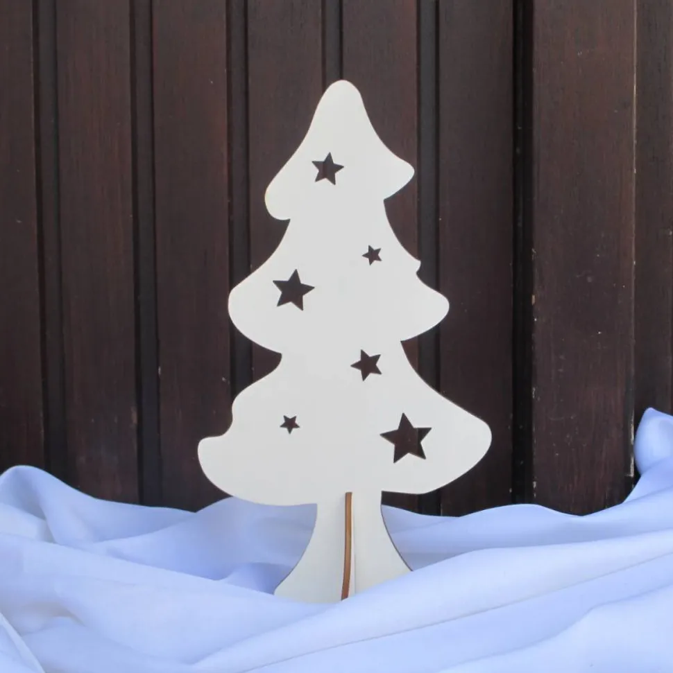 Der Weihnachts-Sternbaum aus Holz macht Ihre Weihnachtsdeko zu etwas ganz Besonderem! Er ist sehr schlicht und einfach gehalten – die ausgestanzten Sterne sorgen aber für großes Aufsehen.