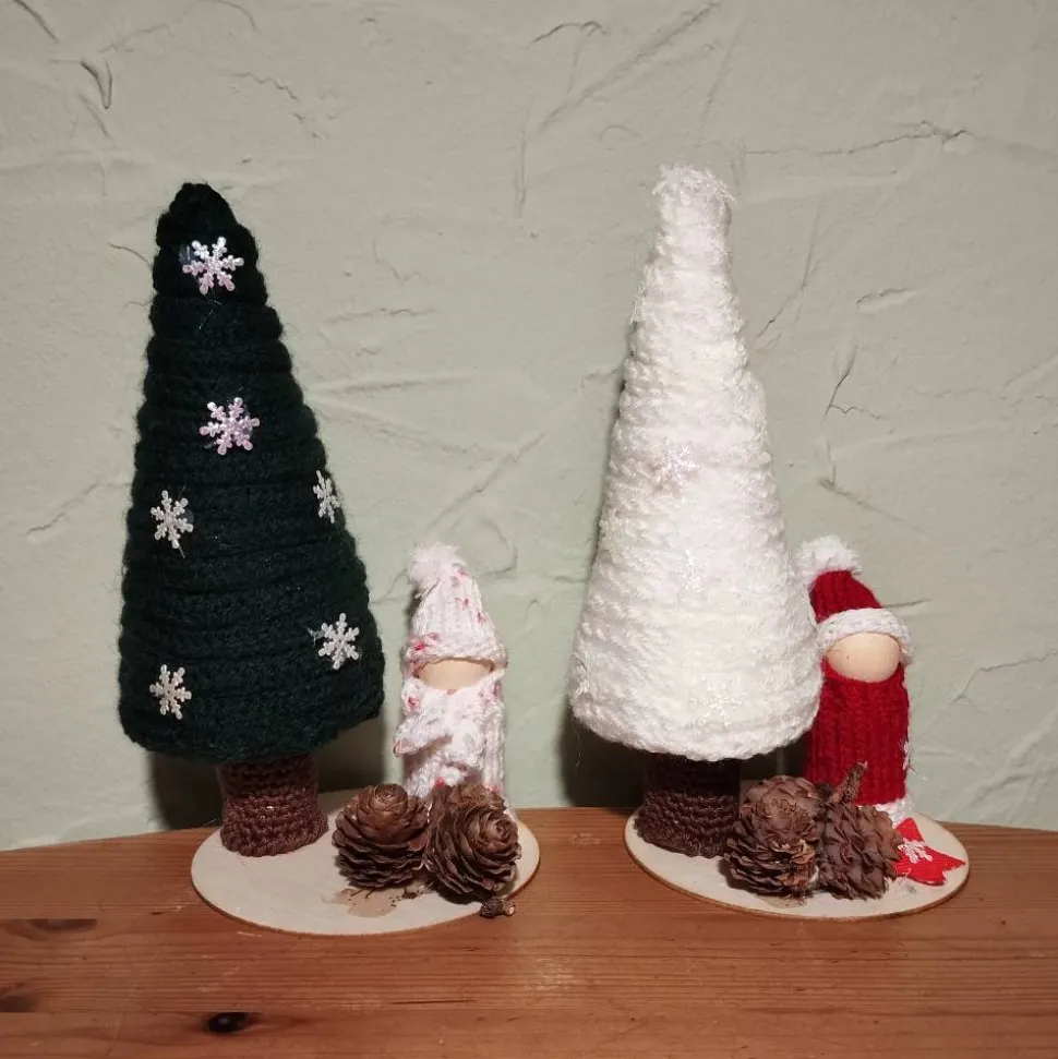 Suchst du eine besondere Tischdekoration zu Weihnachten? Mit dieser handgemachten Weihnachtsbaum Tischdeko setzt du festliche Akzente auf deinem Esstisch. Die Dekoration besteht aus einer langen Kordel, gefertigt mit der altbekannten Strickliesel, die kunstvoll um einen Styroporkegel geklebt wurde. Der „Stamm“ ist ein umhäkelter Korken, der der Dekoration einen liebevollen, natürlichen Charme verleiht.
