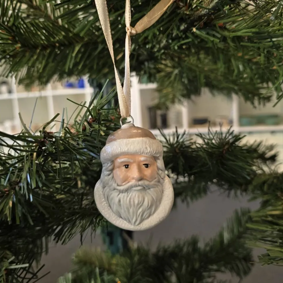 Der Christbaumschmuck hat die Maße von etwa 7,0 x 4,5 x 3,0 cm und ist aus Keramik gefertigt.