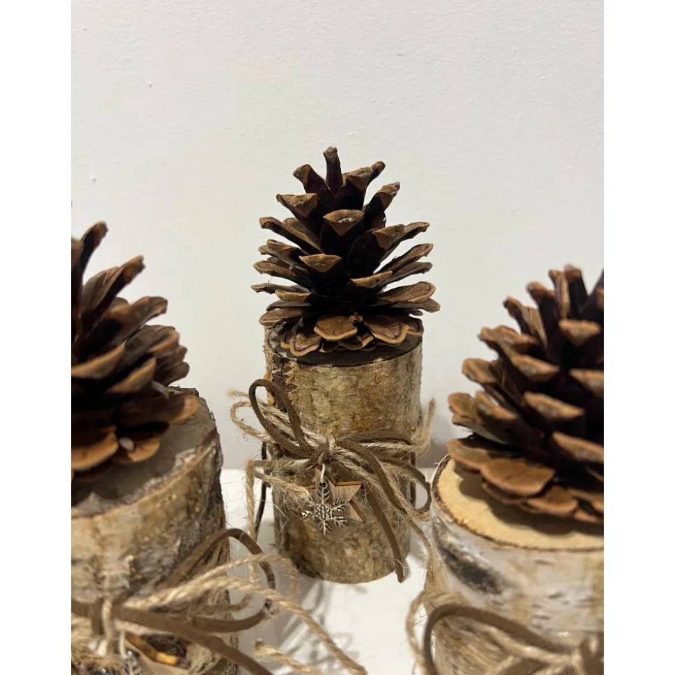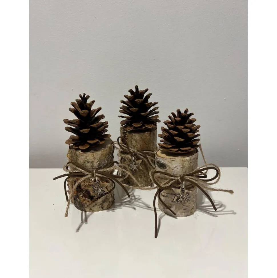 Hier verkaufe ich ein süßes 3er Set Weihnachtsdeko aus kleinen Baumstämmen mit Zapfen und Schleifen, die ich mit sehr viel Liebe zum Detail selbst hergestellt habe 🙂