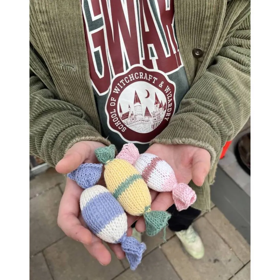 Jedes Bonbon ist aus Baumwolle gestickt und mit Füllwatte gefüllt.