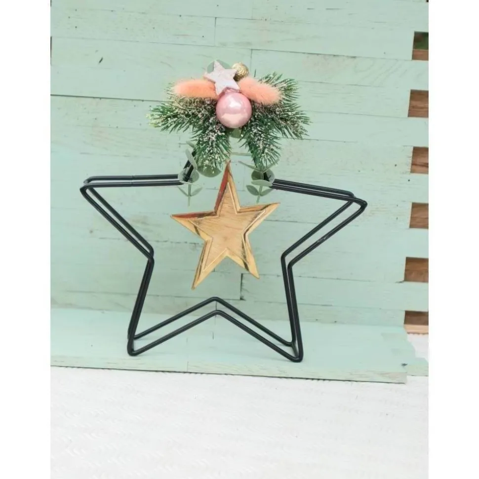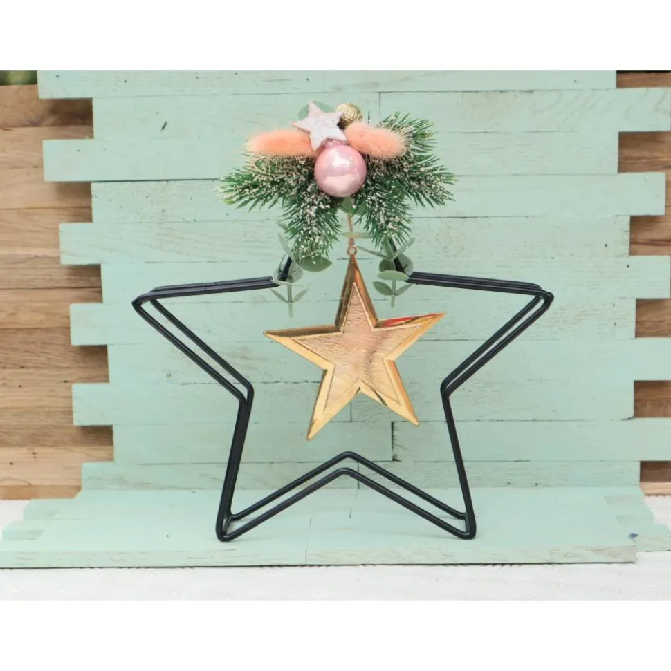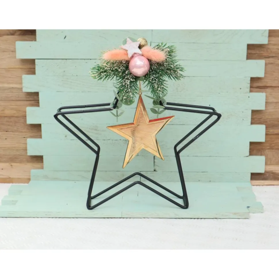 Material: Metallstern, künstliches Grün, Trockenblumen, Glaskugel
