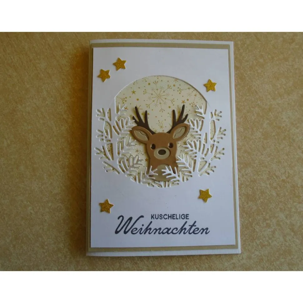 diese Weihnachtskarte wurde verziert mit Stempel,Stanze und Elch ,Weihnachtselch