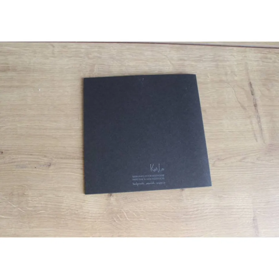 Jede Karte wird sorgfältig von Hand gefertigt, wodurch jedes Exemplar ein Unikat ist. Die Verwendung hochwertiger Materialien garantiert eine hervorragende Qualität. Das Format der Karte bietet ausreichend Platz für persönlichen Worte. Die Karte wird zusammen mit einem passenden Umschlag geliefert.