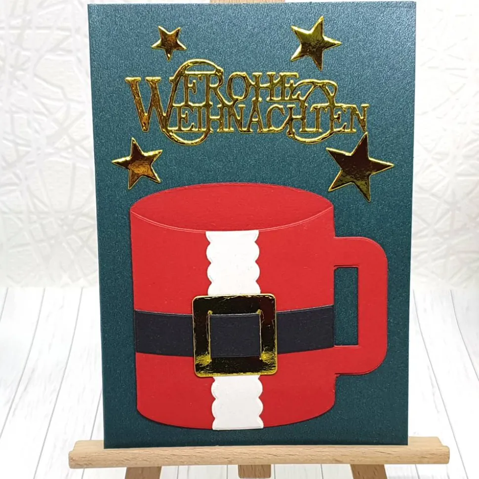 Gutscheine sind immer beliebt – doch einfach in einen Umschlag stecken? Mit dieser Weihnachtskarte als Gutscheinkarte präsentierst Du Deinen Gutschein kreativ und festlich. Die speziell gestaltete Karte bietet ein praktisches Plätzchen für Dein Gutscheinkärtchen: Einfach in die vorgesehene „Tasse“ schieben und das Geschenk bleibt sichtbar.