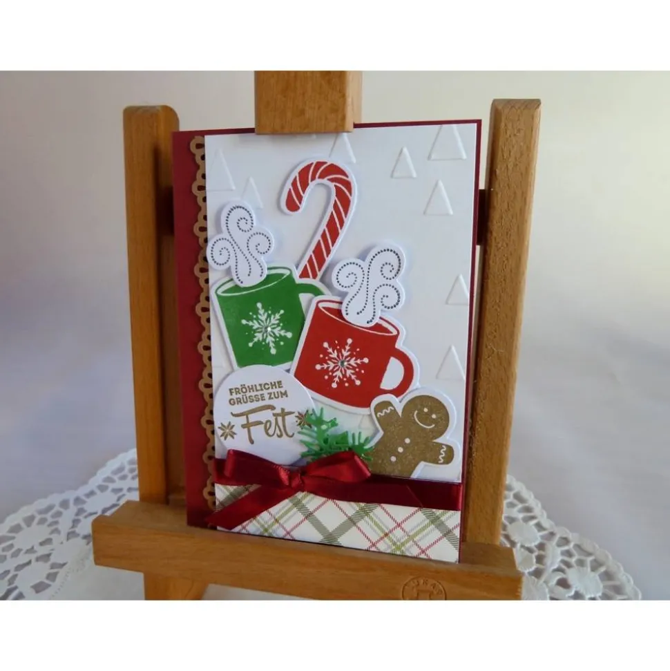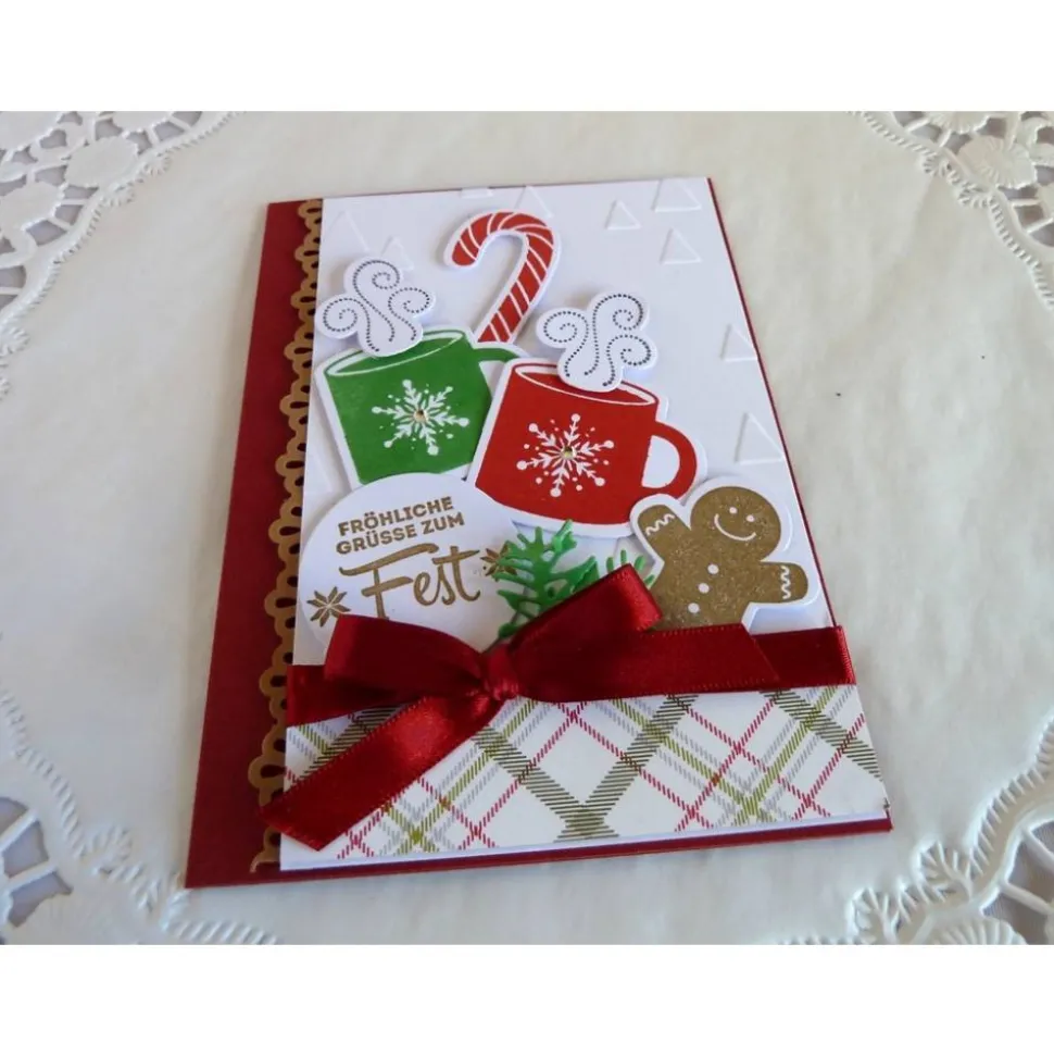 Die Weihnachtskarte wird mit Kuvert, einem Einlegeblatt und Schutzhülle geliefert.