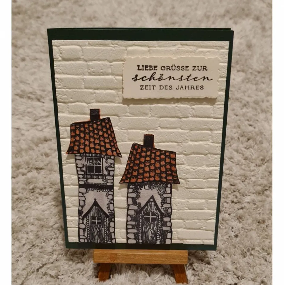 Weihnachtskarte “ Liebe Grüsse zur schönsten Zeit des Jahres “ Häuser , Steinoptik