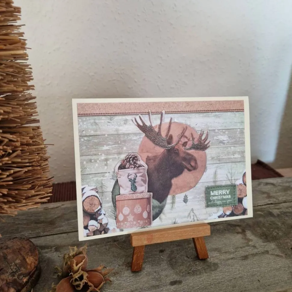 Weihnachtskarte mit Elch - Geschenk - Merry Christmas - Holz