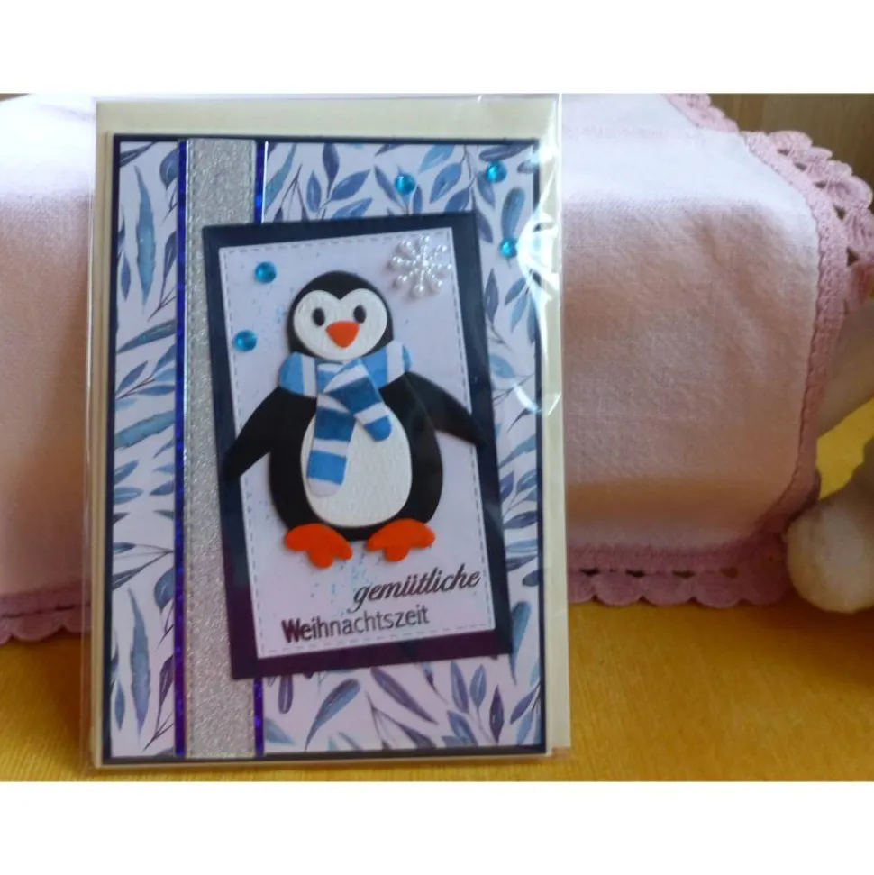 verziert mit einem süßen Pinguin,Sternen und Schneeflocken