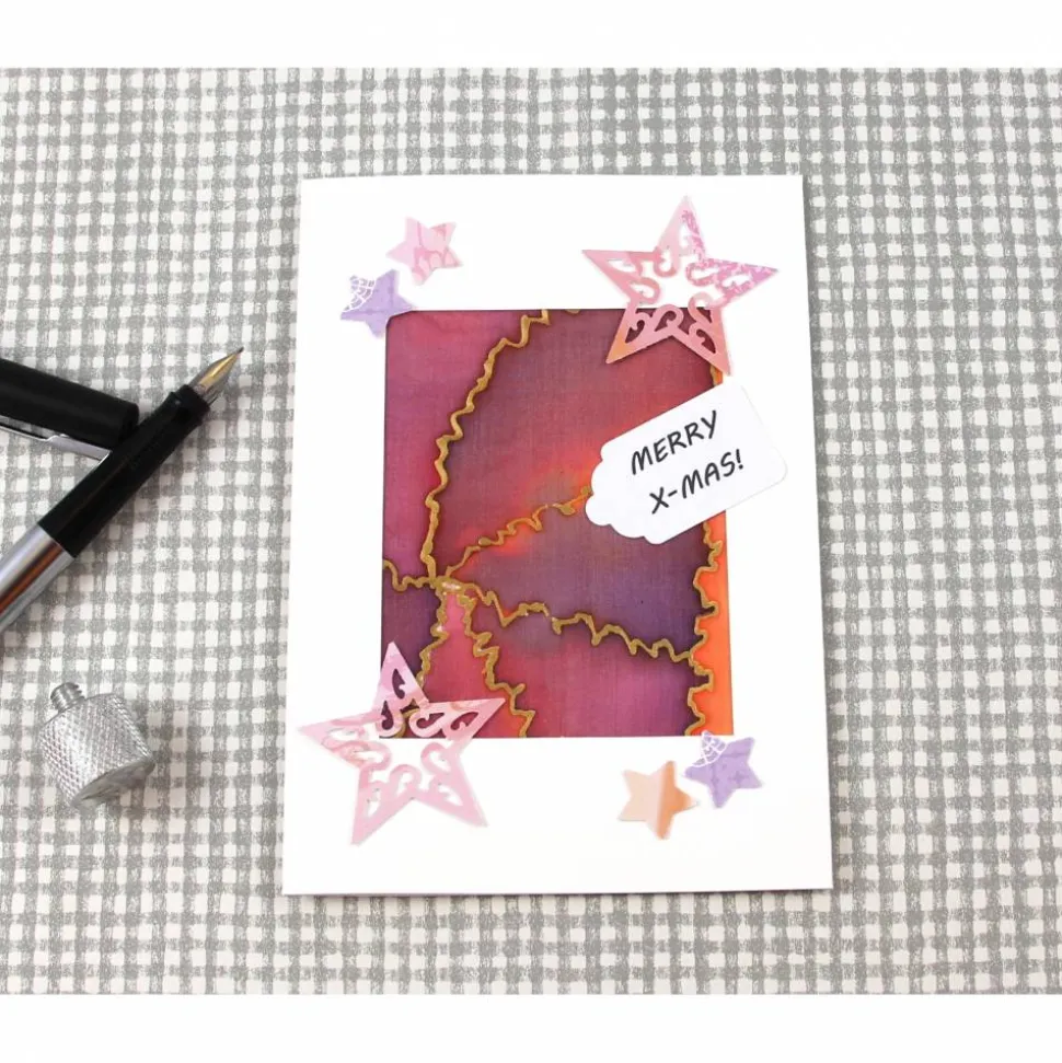 Klappkarte mit Umschlag – Papier & Seide mit weihnachtlichem Motiv – garantiertes Unikat Stars2(Art.Nr. A-283)