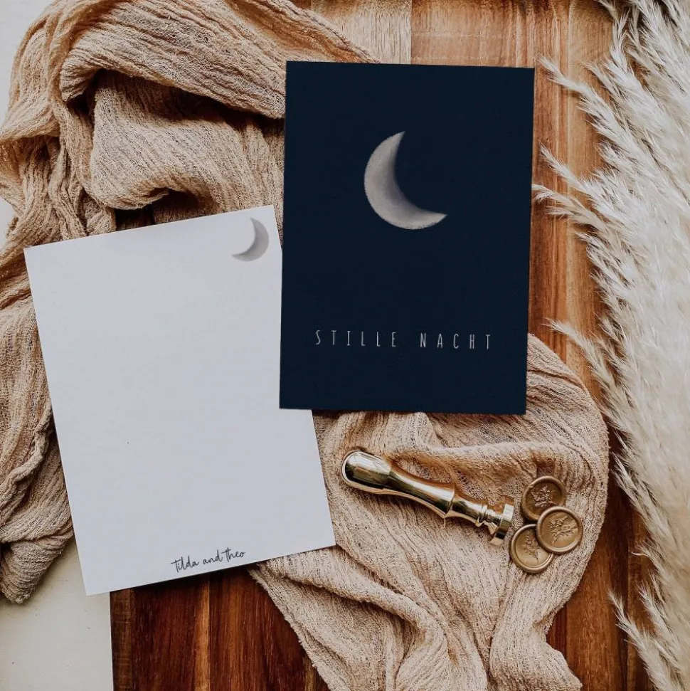 Die Rückseite enthält nur eine kleine Illustration und unseren Schriftzug. So kannst du die Postkarte ganz einfach mit deinen Wünschen oder lieben Grüßen füllen.