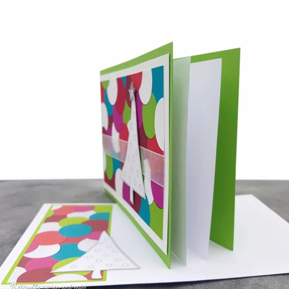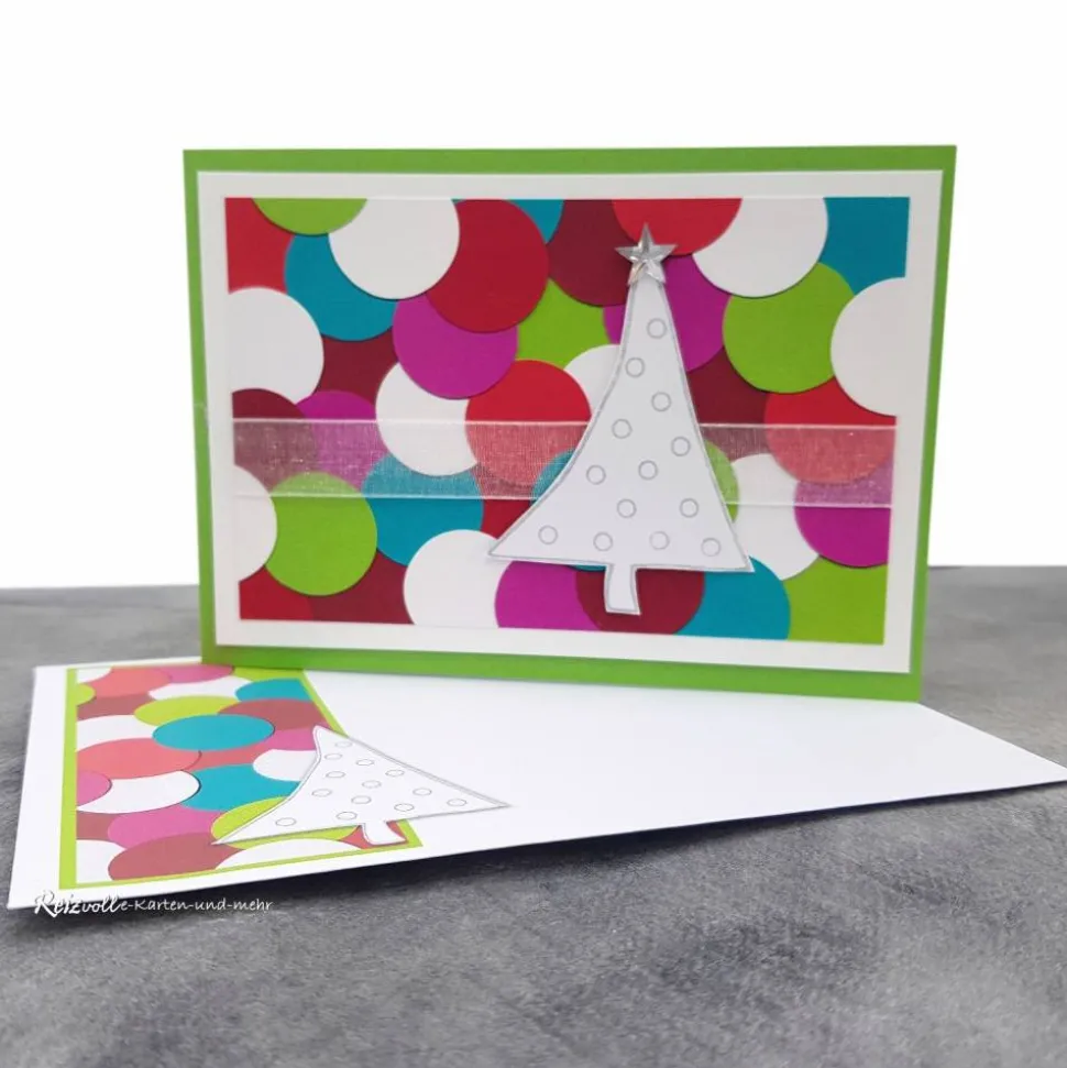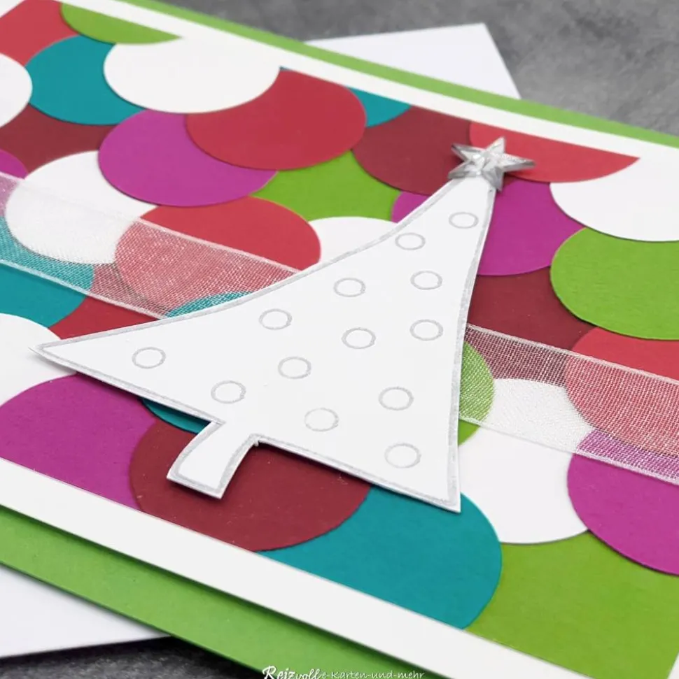 Der Weihnachtsbaum ist in silber gezeichnet, mit einem Schmuckstein versehen und in 3D-Optik aufgeklebt