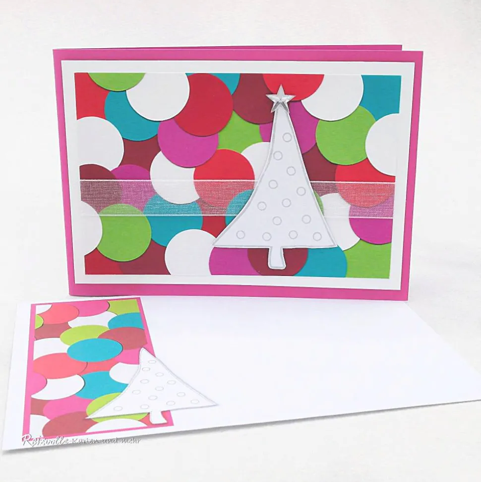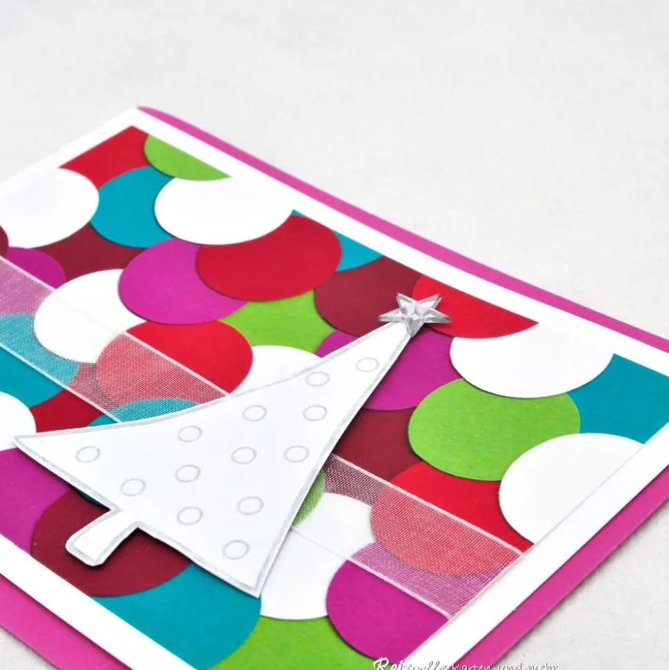 Der Weihnachtsbaum ist in silber gezeichnet, mit einem Schmuckstein versehen und in 3D-Optik aufgeklebt