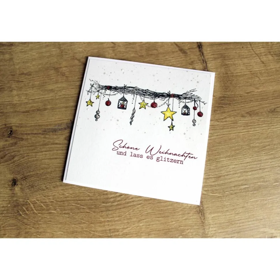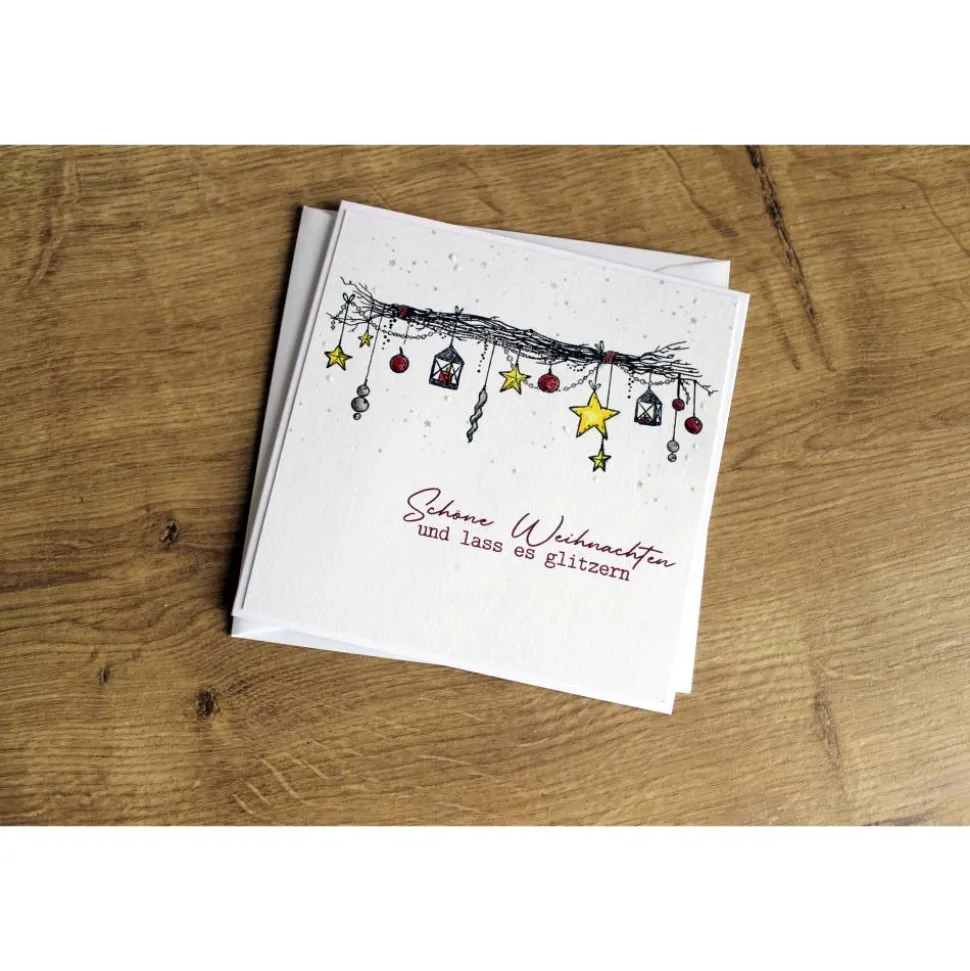 Jede Karte wird sorgfältig von Hand gefertigt, wodurch jedes Exemplar ein Unikat ist. Die Verwendung hochwertiger Materialien garantiert eine hervorragende Qualität. Das Format der Karte bietet ausreichend Platz für persönlichen Worte. Die Karte wird zusammen mit einem passenden Umschlag geliefert.
