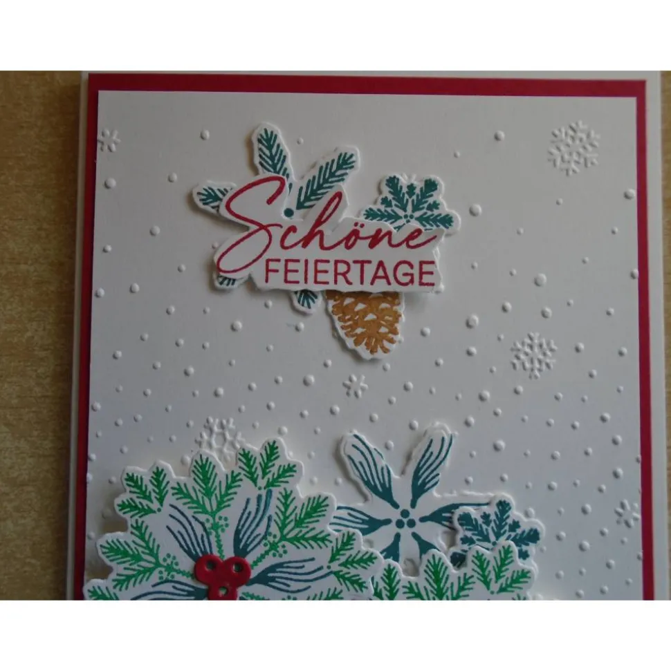 Hier seht ihr eine schöne Weihnachtskarte mit Tannenzweigen…