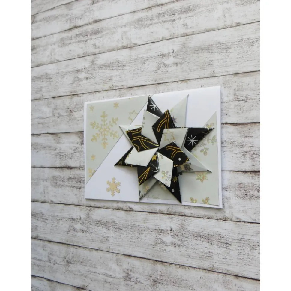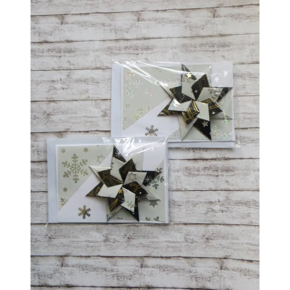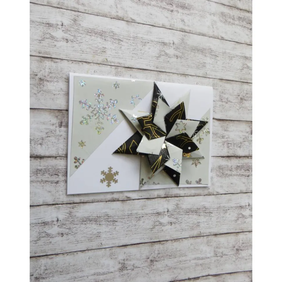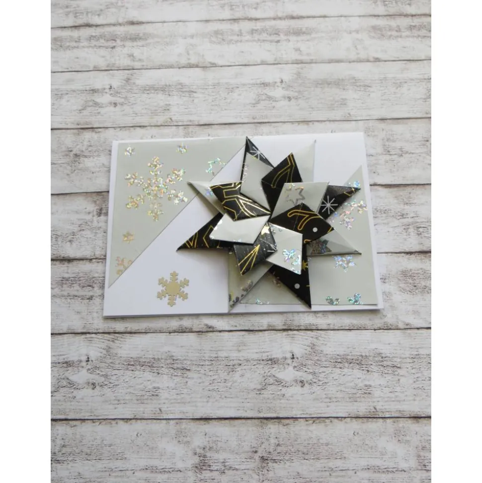 Eine Weihnachtskarte mit einem handgearbetet selbgemachten Stern in 3d Design. Weihnachtsgrüße mit einem großen Weihnachtsstern in schwarz, weiß und silber. Grüße zu Weihnachten mal andres mit einer solch edel gestalteten Weihnachtskarte. So ist auch ein Geldgeschenk oder ein Gutschein zu Weihnachten hübsch verpackt. Ideal auch für diejenigen die um Weihnachten Geburtstag haben