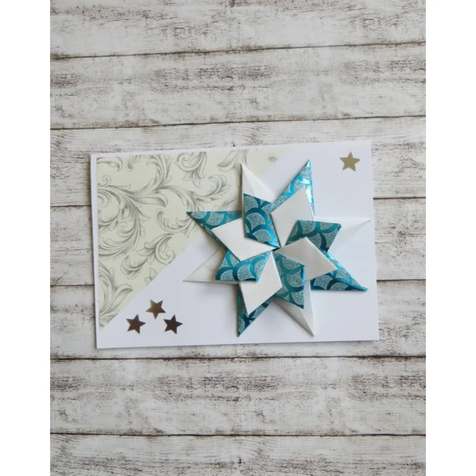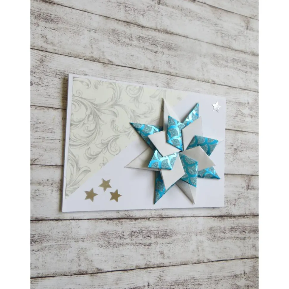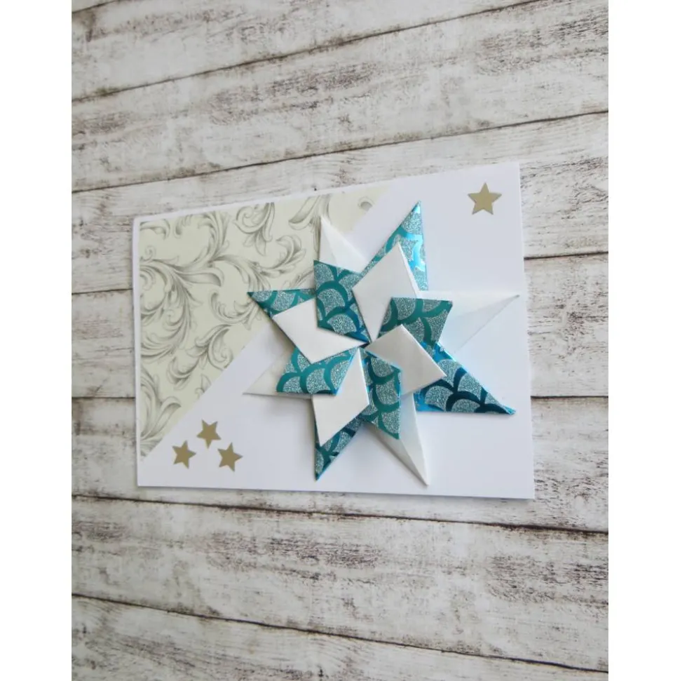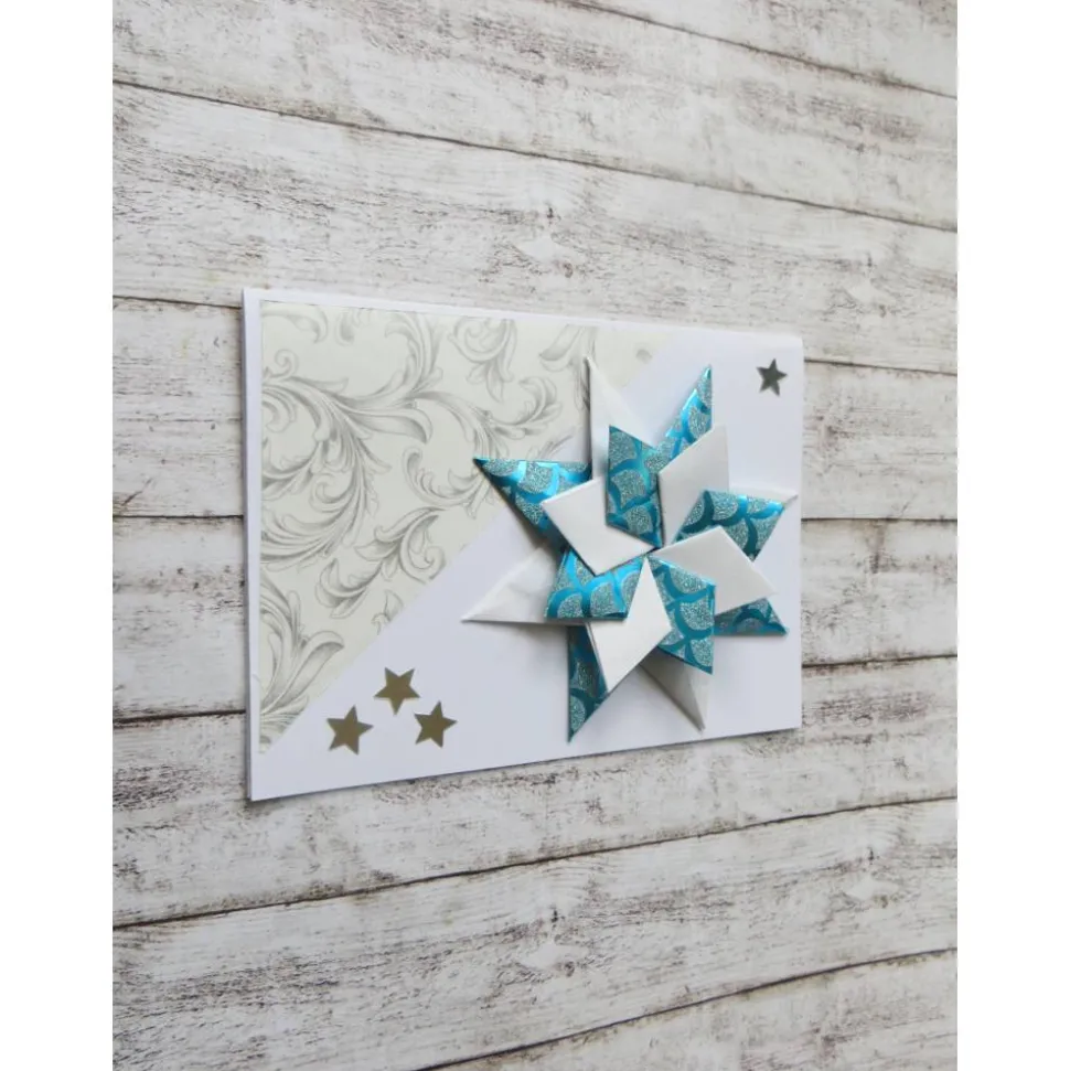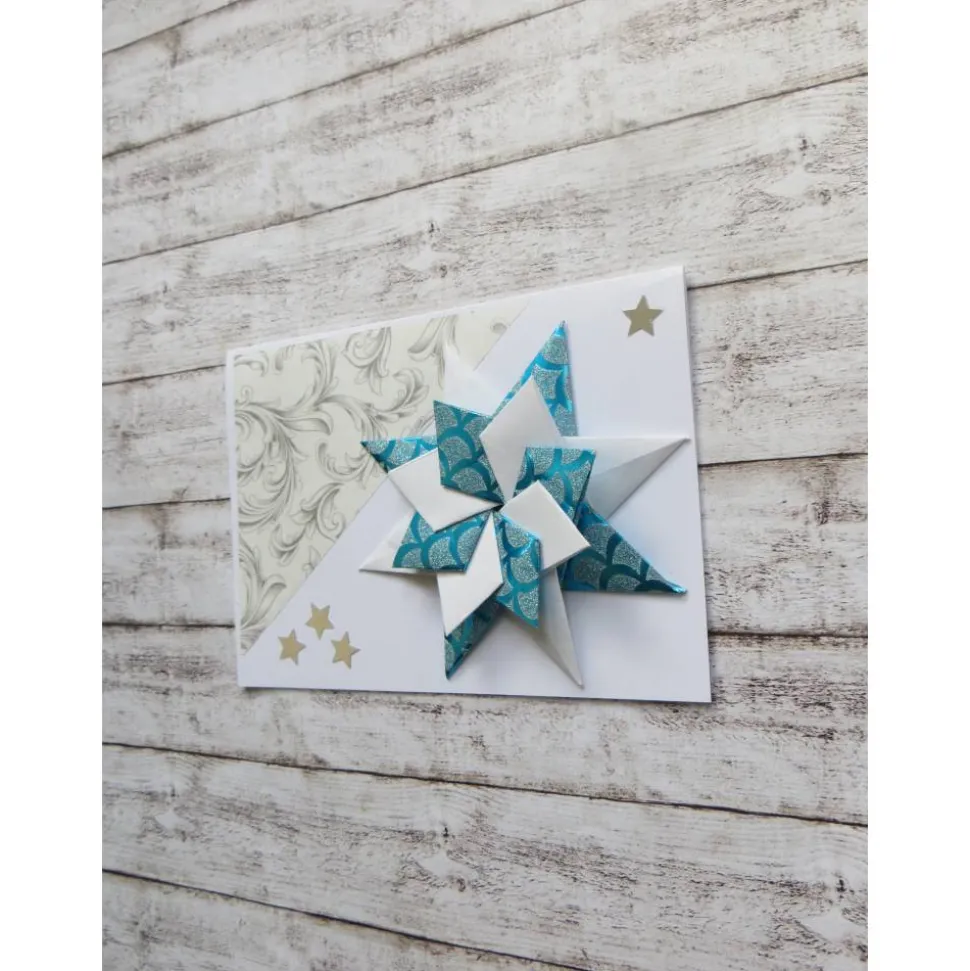 Weihnachtsgrüße mit einem Weihnachtsstern in türkis,weiß und silber.